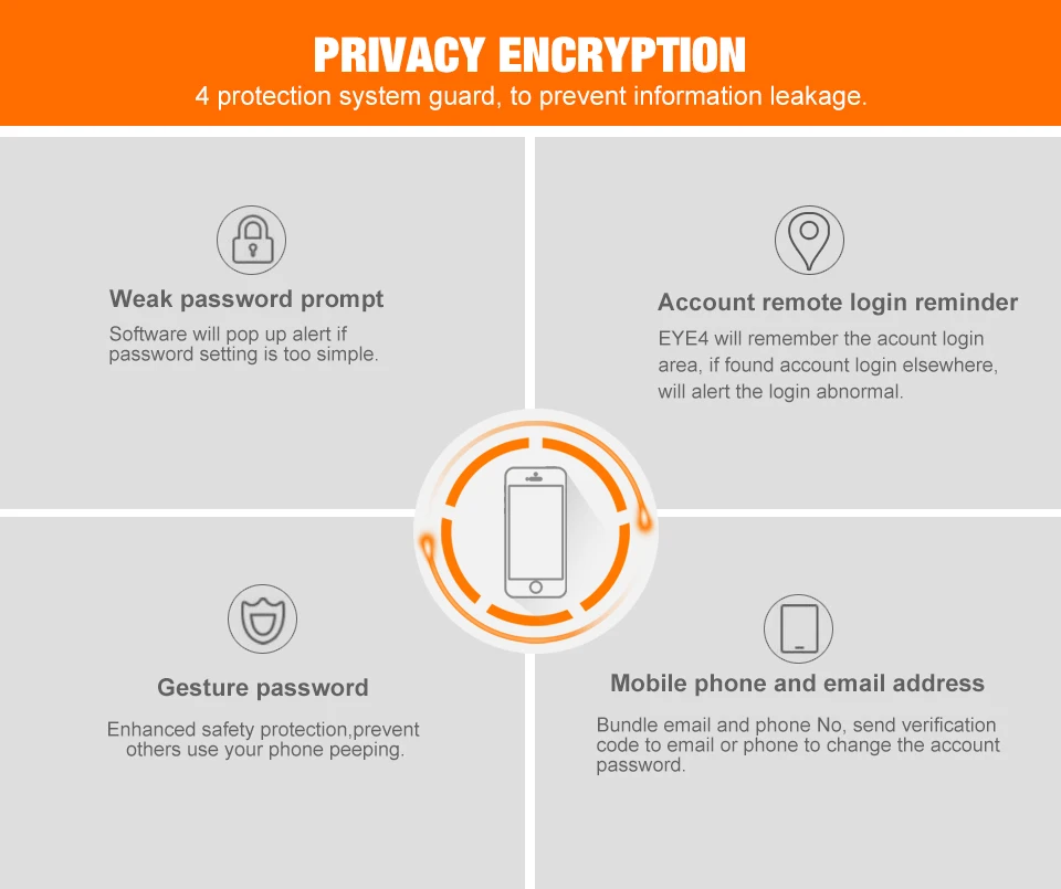 1. Загрузите приложение Eye4 и установите 2. Включите камеру 3. Подключите камеру к приложению Eye4 через WIFI 4. Монитор на мобильный телефон.