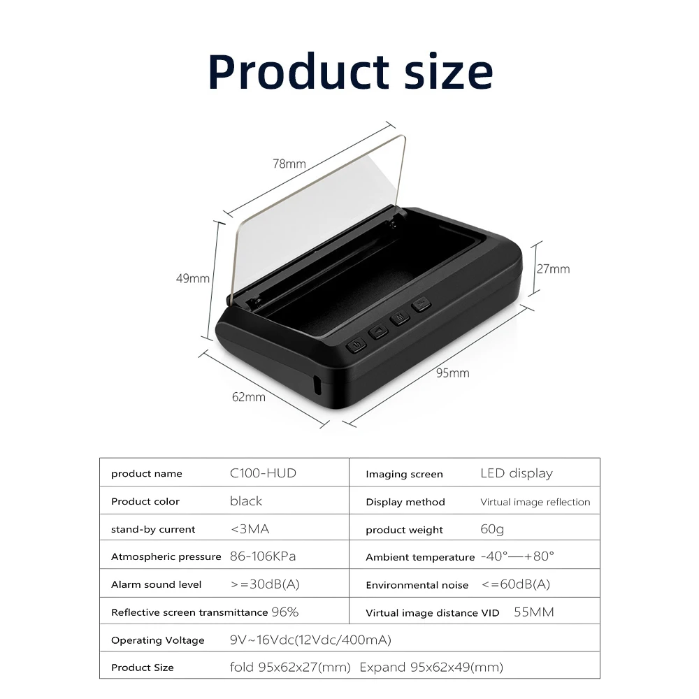 (Этот патент на дизайн продукта и авторское право на изображения были зарегистрированы в таможенной записи) Информация о продукте: HUD короткий для головы вверх дисплей, основная функция состоит в отображении информации приборной панели автомобиля (e.g. Скорость, об/мин, температура воды, напряжение, расстояние поездки и т. Д.), и держать водителя глаза всегда на дороге, чтобы избежать опасности опускания вниз головой, чтобы читать приборную панель. Функция продукта: 1. Многофункциональная функция: скорость, обороты двигателя, температура воды, напряжение, расстояние движения 2. Усталость вождения, ошибка двигателя 3. Значок температуры воды, значок напряжения 4. Датчик освещения: HUD может автоматически регулировать яркость в зависимости от окружающей среды 5.MPH = скорость миля/час, км/ч = километр/час, MPH = миля/час Кнопка функции: Короткое нажатие (1 секунда) Длительное нажатие 5s, пока не появится изображение на дисплее Выключатель питания: 5s выключить, снова включить 1. Короткий пресс <' (1) Переключение режима отображения (2) Настройка параметров меню 2. Длительное нажатие "<'выключите зуммер и нажмите на 2 секунды, чтобы снова включить зуммер. 3. Короткие Press'M'OBD системы: для переключения напряжения, температуры воды, скорости транспортного средства во время OBD системы, введите в меню настройки для переключения параметров меню или значений параметров Длинное нажатие: для входа в настройки меню (см. Инструкции по меню 1-12) и нажмите 5 секунд для сохранения и выхода 4. Короткое нажатие '>' Переключение режима скорости, добавить Меню или параметр после ввода настройки Длинные кнопки> '(1) для подтверждения работы всех светодиодных ламп (2) для очистки кода неисправности двигателя Восстановить настройки: Отключите блок питания, нажмите кнопку «M» и удерживайте до тех пор, пока не загорятся все светодиодные индикаторы. Оформление кода неисправностей: Нажмите кнопку «>» и удерживайте до тех пор, пока не загорятся все светодиодные индикаторы. Выключение/включение зуммера Нажмите и удерживайте кнопку «<», чтобы выключить зуммер и снова включить. Скоростной режим переключения После того, как HUD отображается нормально, короткое нажатие '>' переключает режим скорости OBD диагностики: 1. Экран без дисплея и без питания Пожалуйста, выполните эти операции: если OBD кабель достаточно тугой, потяните OBD кабель несколько раз. Попробуйте другой автомобиль для тестирования 2. При включении HUD, HUD показывает только Напряжение автомобиля и автоматически выключается через 30 секунд вождения. HUD доступен только для автомобилей с OBD2 и EOBD соглашение (Европейский: изготовлено после 2003, другой регион: после 2007) Продукты HUD не поддерживают JOBD и OBDI, заменяют другие транспортные средства, которые соответствуют интерфейсу OBD2 3. Неправильная операция приводит к авариям A. Если ваш автомобиль оснащён другими OBD устройствами (датчик парковки, монитор TPMS, доводчик окна автомобиля, ELM27) B. Если ваш автомобиль был изменен (Центральная навигация управления, электронный контроллер дроссельной заслонки, круиз скорости, обновление компьютерной системы, запуск одним нажатием кнопки, бесключевая запись, удаленный запуск) вызовет аварию, отключите другие OBD устройства и сделайте заводские настройки (более подробную информацию см. В таблице меню) Вытяните один или два провода и используйте HUD са