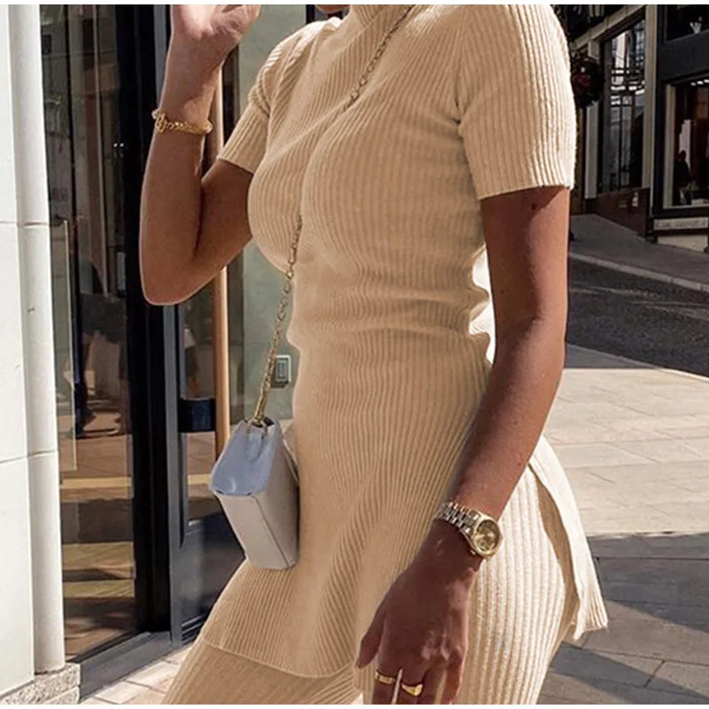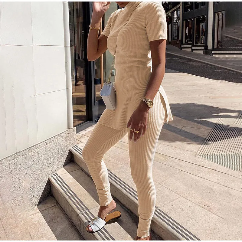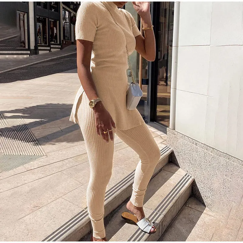 Трикотажные Ребристые женские футболки комплект из 2 предметов футболка с коротким рукавом женский костюм 2021 осенние уличные женские длинные брюки костюмы