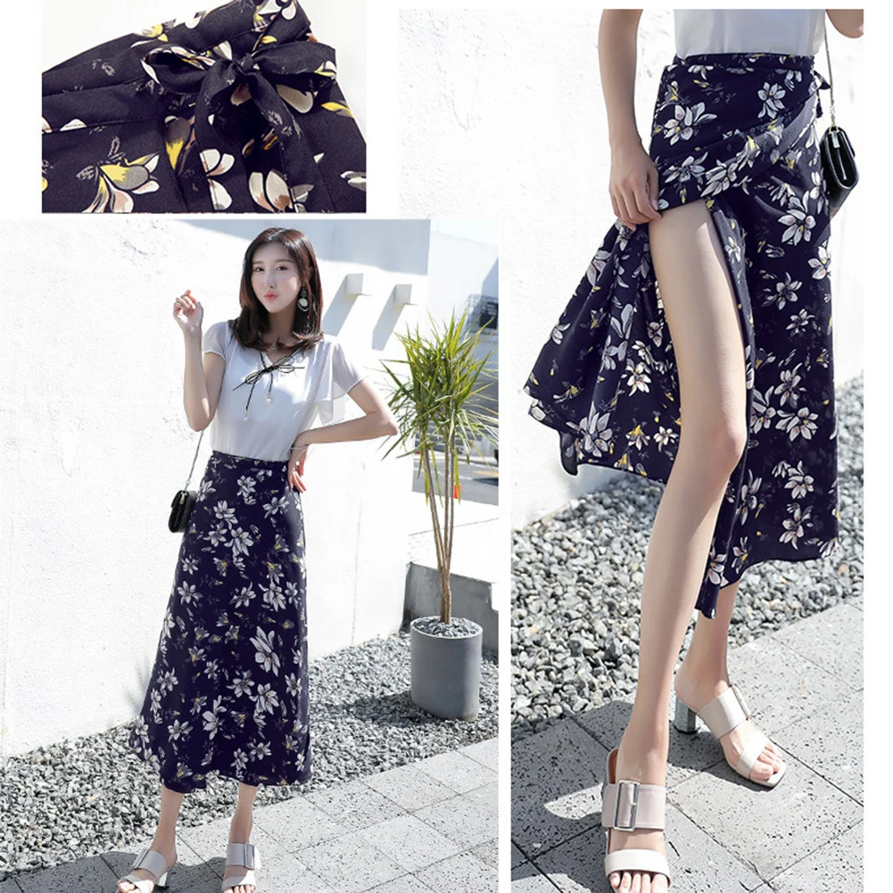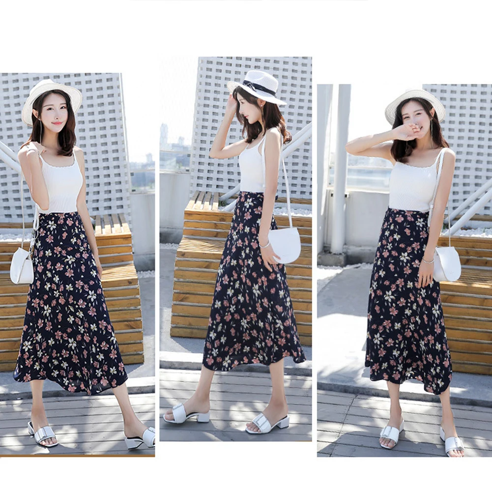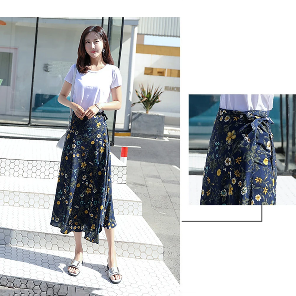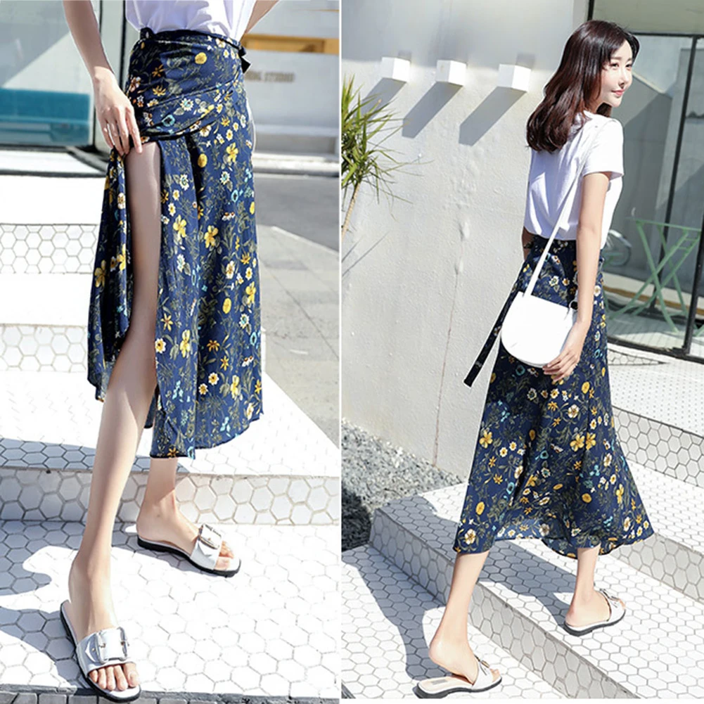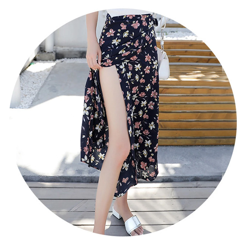 Модная женская Пляжная Юбка-миди с цветочным принтом и высокой талией