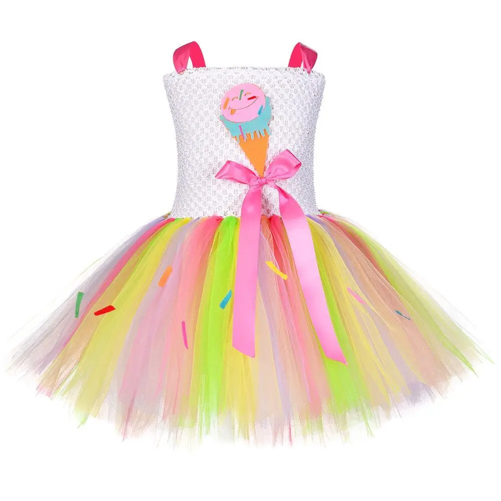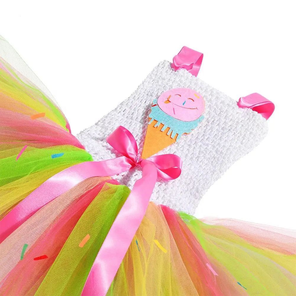 Платье-пачка с мороженым ручной работы, эластичный Топ на подкладке из хлопка и вязания крючком, 100% полиэстер, полоски из тюля, 100% нейлон, мы используем достаточно тюля, чтобы убедиться, что он очень пушистый, удобный в носке, вы можете купить его с уверенностью