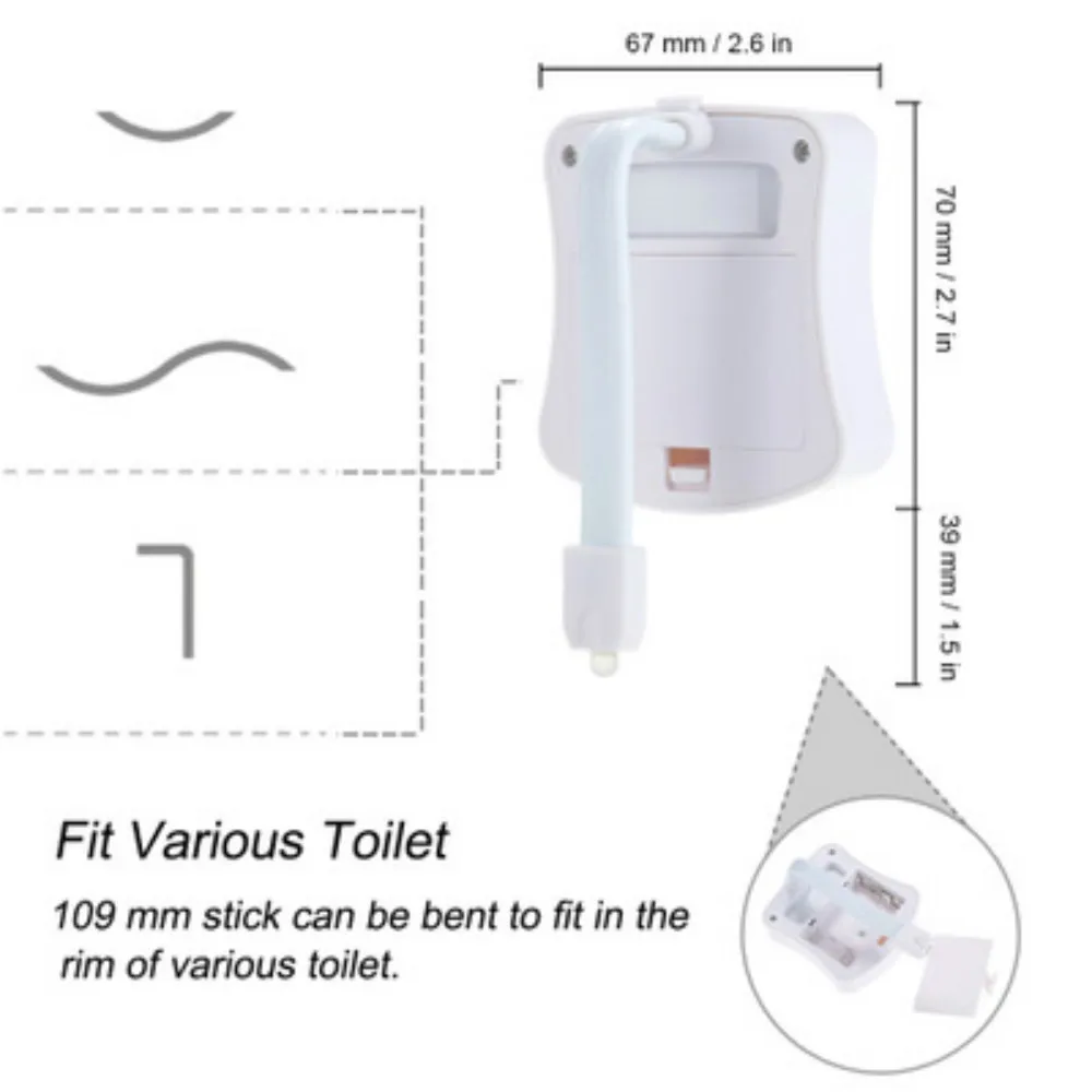 Особенности: 1. Система автоматического зондирования: она включится при закрытии, автоматически выключается при выезде 2. 8-Цвет светильник излучения: 8-Цвет светильник, в свою очередь, каждый Цвет в течение 15 секунд в случайном порядке, 120 секунд в целом для круга, вы также можете зафиксировать один Цвет вы желаете 3. Энергосбережение и полезность: это позволяет вашей ванной легко получить доступ через устройство автоматического обнаружения, умный и внимательный 4. Мягкая ПВХ шея может быть гибко согнута для большего удобства 5. Санитарный дизайн: легко чистить 6. Гладкий и стильный дизайн, нежный орнамент. Очень умное устройство для всех вас 7. Подходит для всех ванных комнат: дома, гостиницы, ресторана, дома caffee и т. д. Технические характеристики: 1. Материал: АБС-пластик 2. Светильник источник света: светодиодный 3. Напряжение: 4,5 V 4. Мощность: 1 Вт 5. Цвет корпуса: белый 6. Светильник 8 цветов 7. Источник питания: 3x AAA батареи (не входят в комплект) 8. Характеристики: датчик движения 9. Размеры: 6,8*6,7*1,7 см Посылка включает в себя: Светильник Toliet (аккумулятор не входит в комплект)-1 шт.