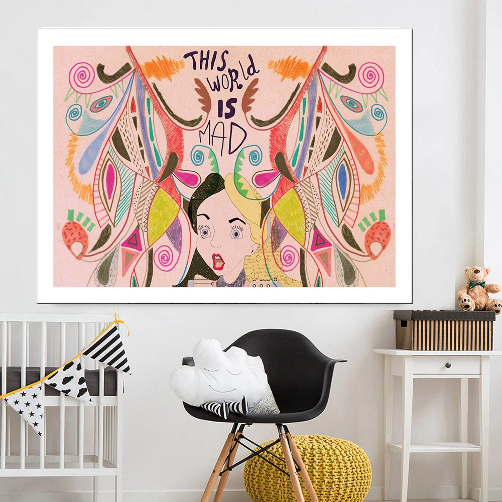 Художественная печать на холсте с изображением Алисы в стране чудес, цветной постер и печать на стене, Современное украшение для комнаты для девочек