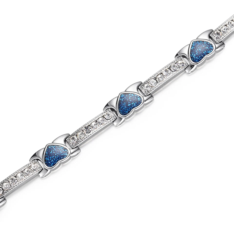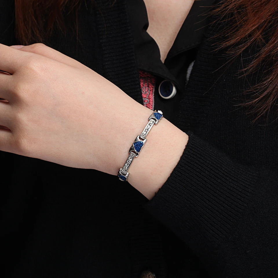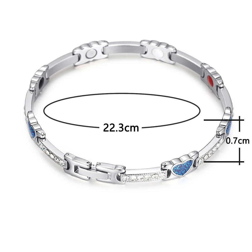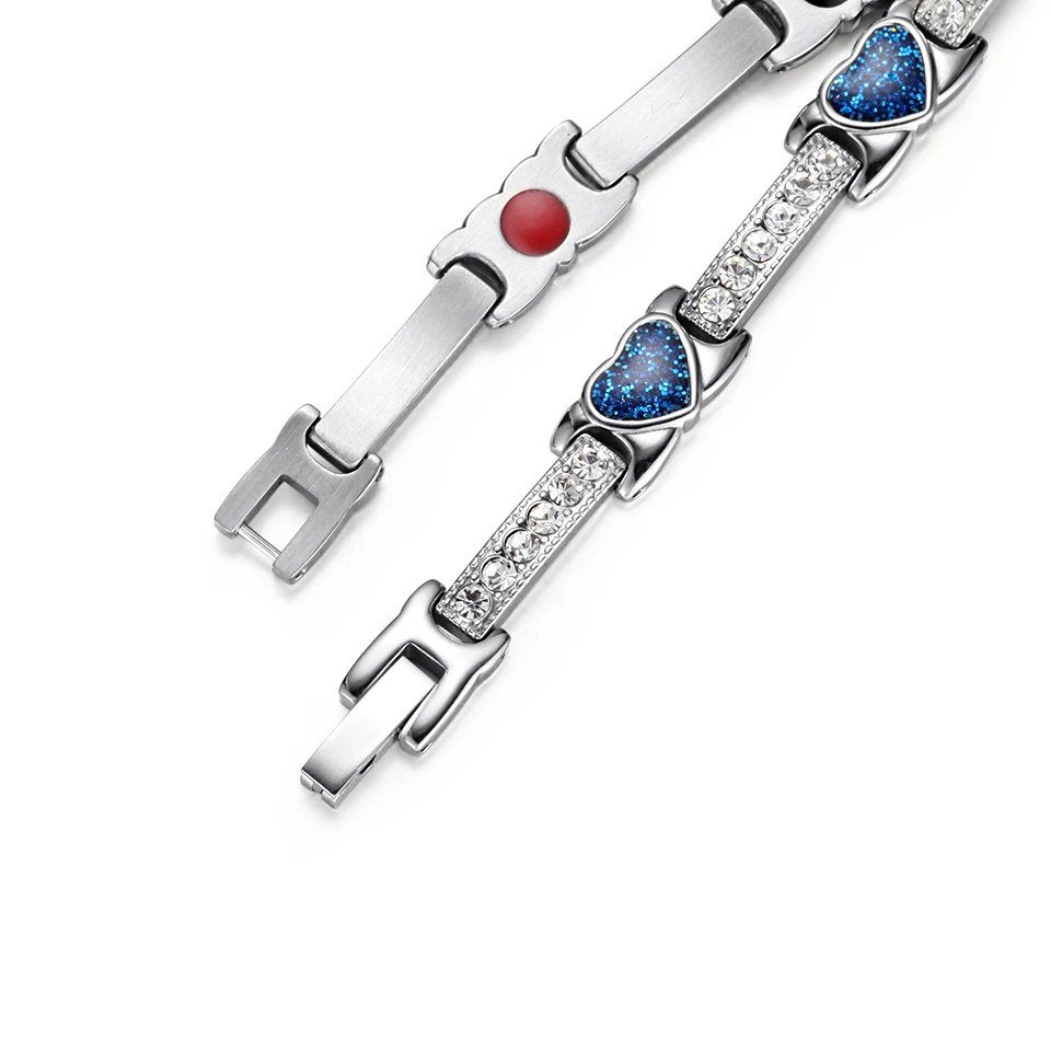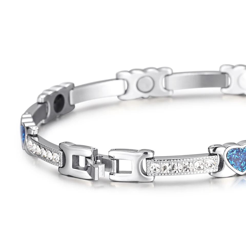 Женские Романтические браслеты с кристаллами в виде сердца, браслет из нержавеющей стали с магнитным германиевым балансом, женская синяя цепочка, новинка 2021