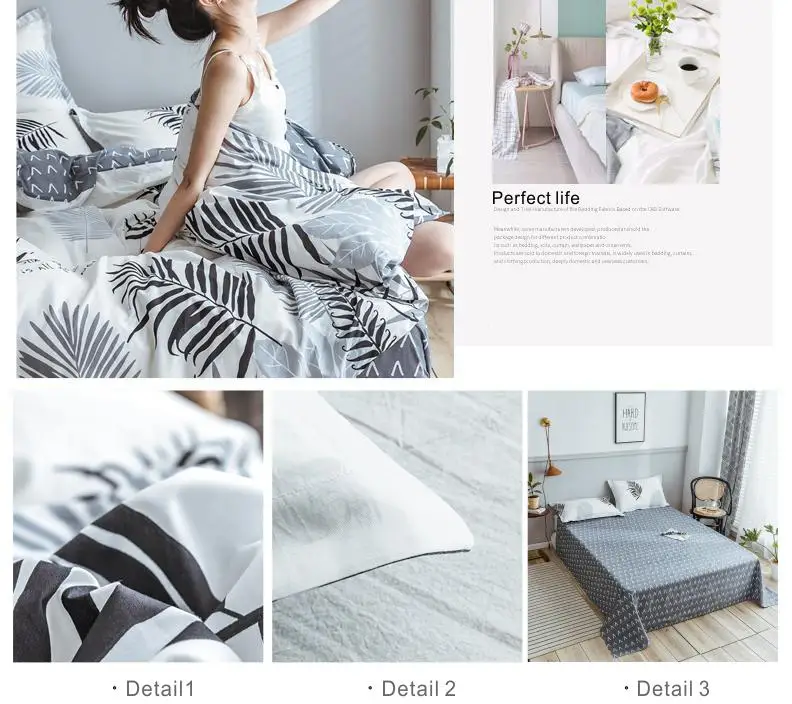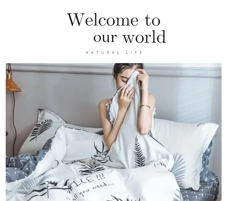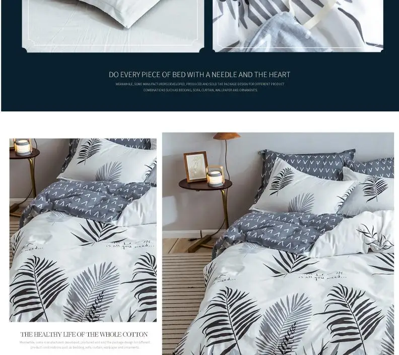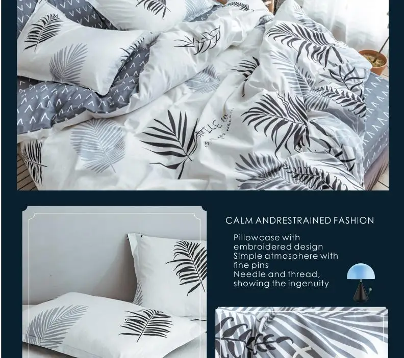 Постельные принадлежности из чистого хлопка, набор пододеяльников, Королевский размер, скандинавский белый лист, растение, одна двуспальная королева, постельное белье, плоская простыня