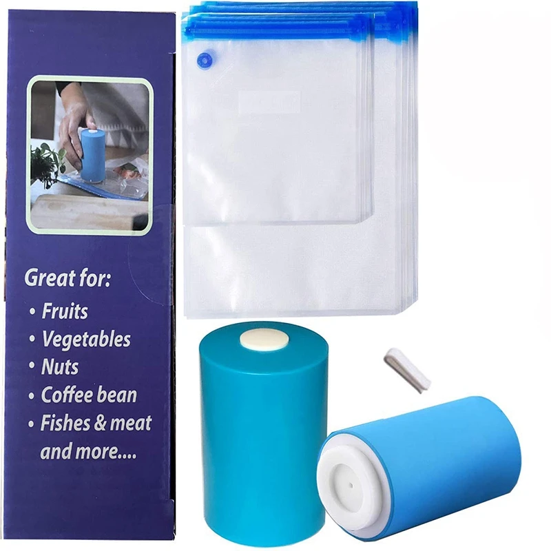 [Новый способ запечатывания и сохранения пищи]-отличный Модернизированный автоматический мини-вакуумный упаковщик с 22 многоразовыми прочными упаковочными мешками. Супер для приготовления пищи sous vide, предотвращает ожоги морозильной камеры на замороженных фруктах и овощах, сохраняет питательные вещества в целости и свежести в 3-5 раз дольше без воздуха, экономит время и деньги.