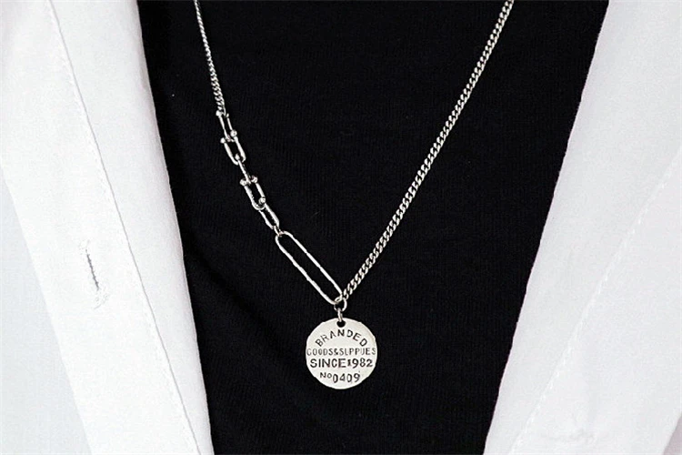 Korean Style Punk Vintage Style Large Big Pendant Necklaces Round Letters Numbers Tibetan Silver Necklaces Gift To Girlfriend