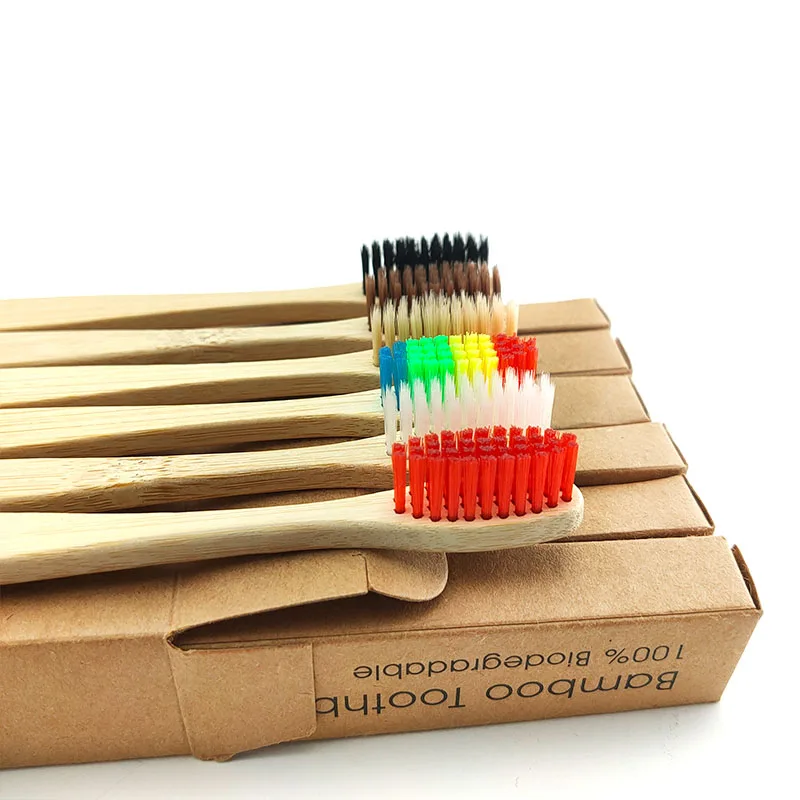 Горячая 12 шт. Экологичная бамбуковая зубная щетка высокого качества смешанный цвет 100% биоразлагаемая натуральная ручка щетка для взрослых уход за полостью рта