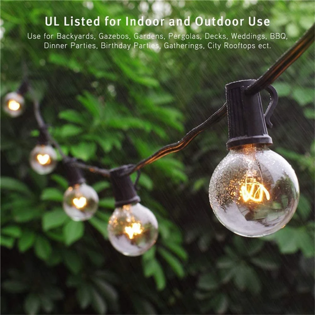 25FT Outdoor String Lights Bulbs Fairy String Light Christmas Outdoor Lighting G40 Street Garland Wedding Backyard Decor