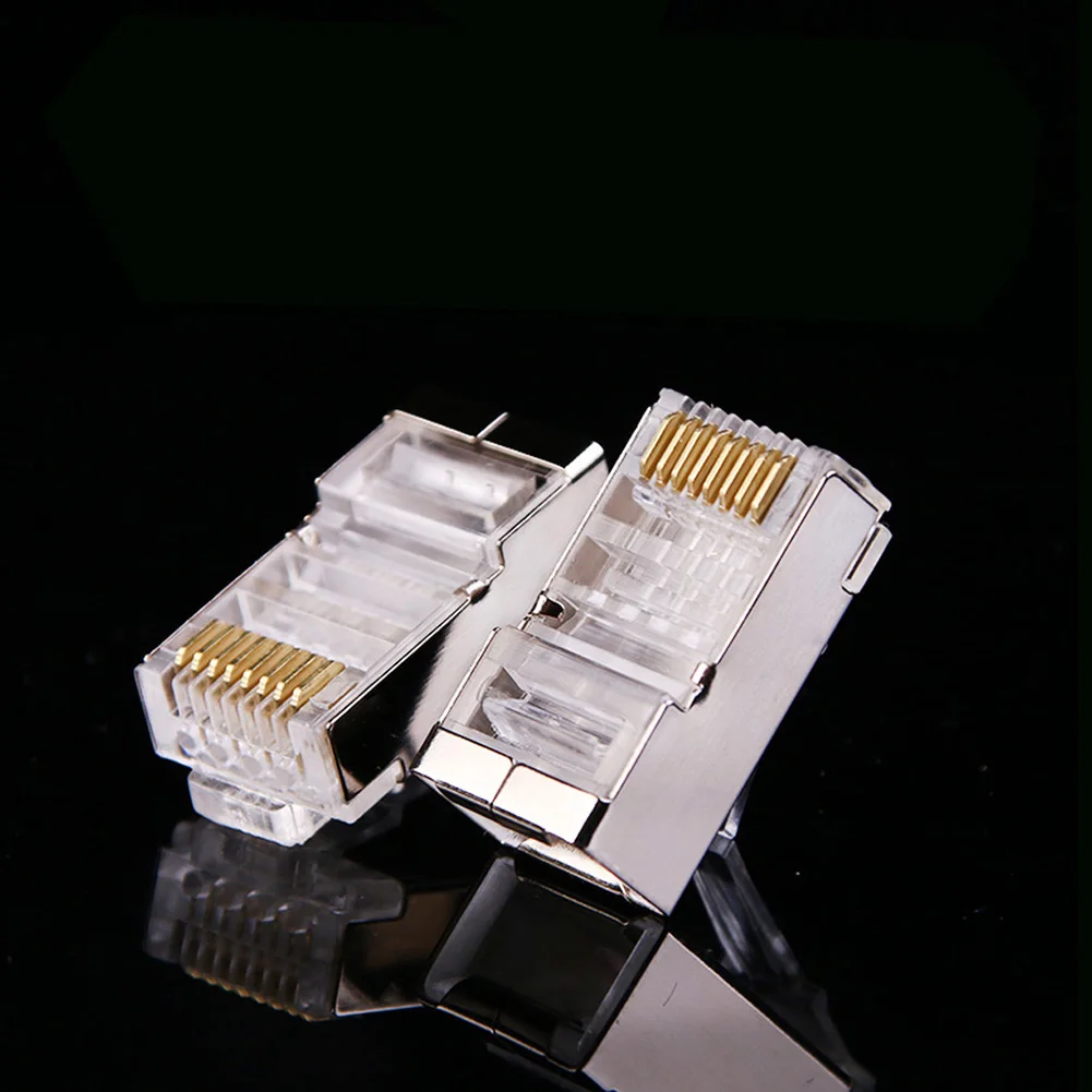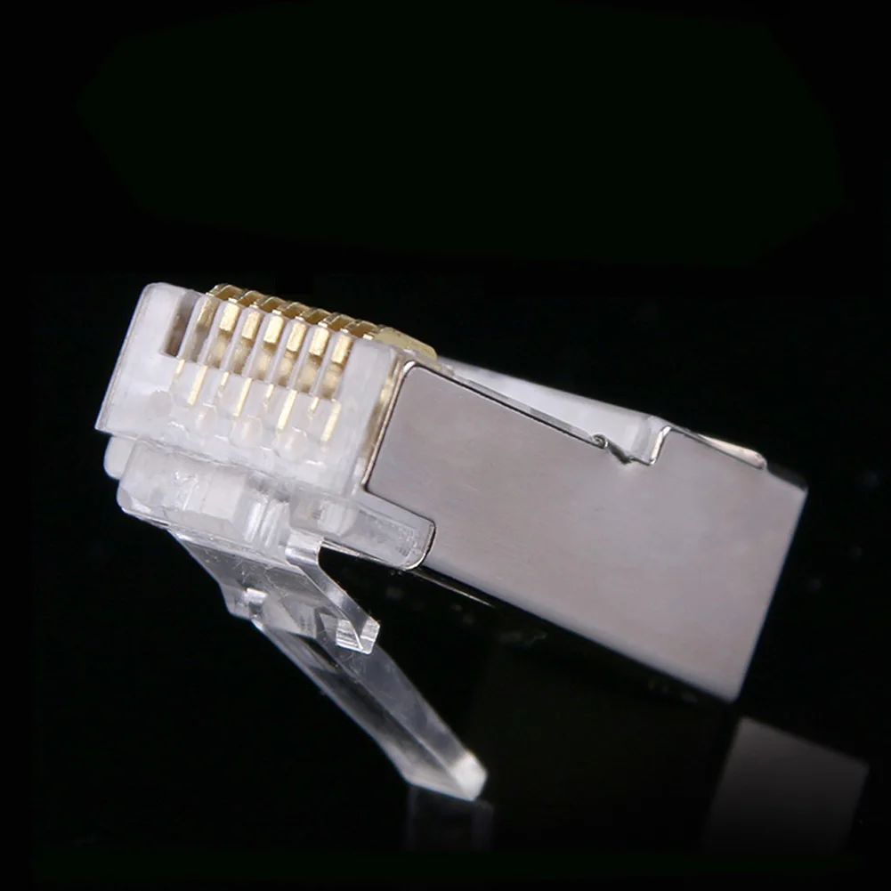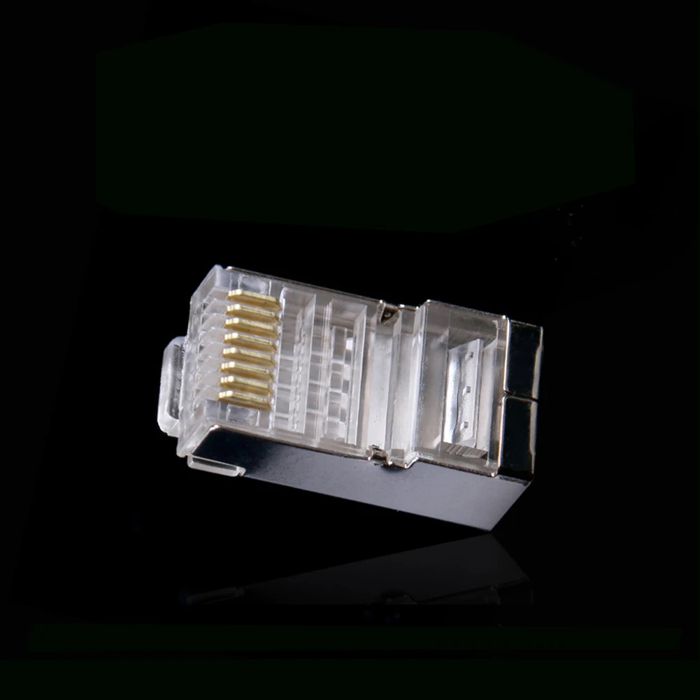 100 шт чистый металлический щит RJ45 модульная вилка RJ-45 8P8C CAT6 сетевой кабель