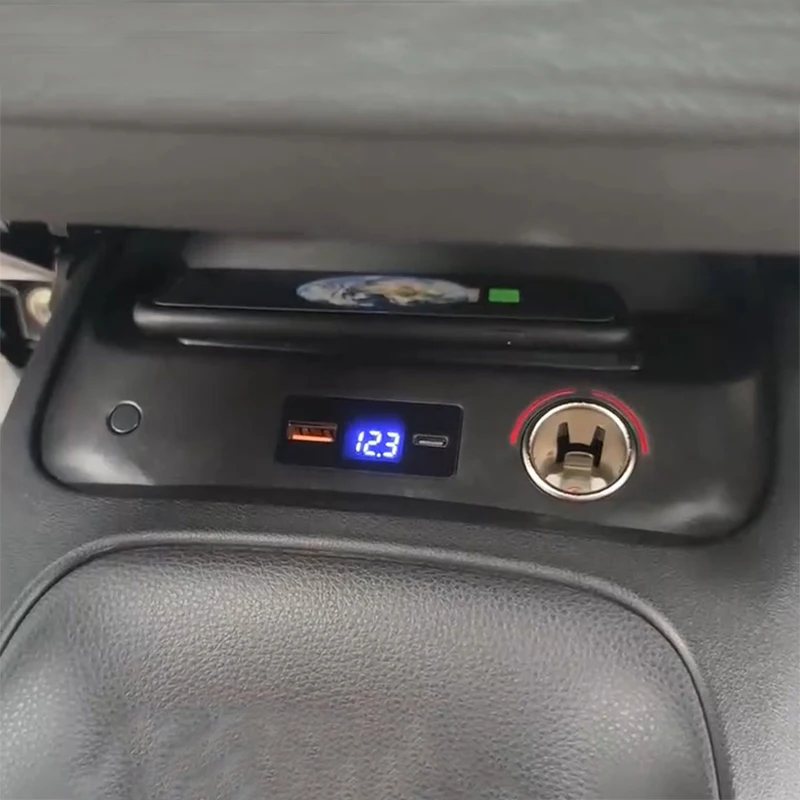 Установка: Снимите крышку центральной консоли и панель переключения передач, чтобы найти вилку автомобильного прикуривателя, затем отсоедините ее и свяжитесь с кабелем зарядного устройства к вилке автомобиля и прикуривателю