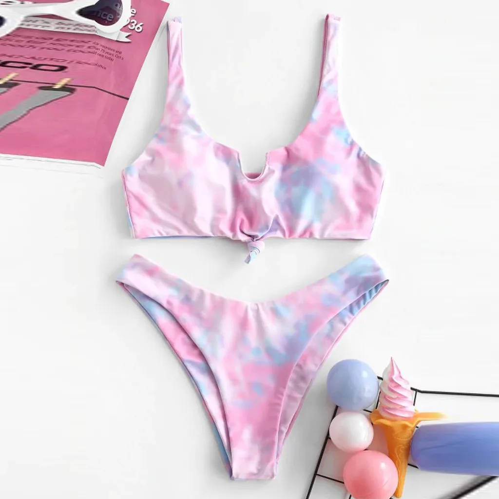 Женский сексуальный купальник-бикини с завязками на завязках и высокой талией