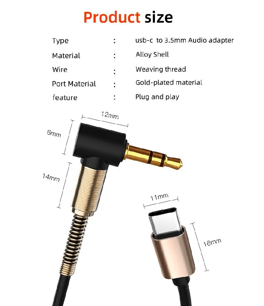 Модель: Тип C до 3,5 мм вспомогательный кабель