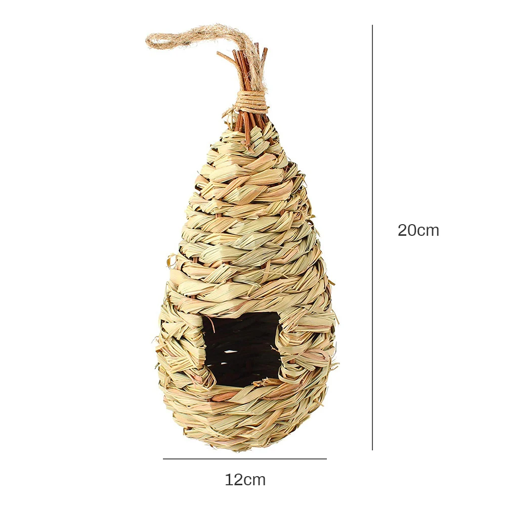 - 【EASY TO HANG WITH HANGING LOOP】 This gourd or teardrop shaped woven grass bird hut is super easy to hang inside or outside your home. It comes with a hanging loop made of natural fibers attached at the top that can be hung from a tree branch or hooked on your porch.