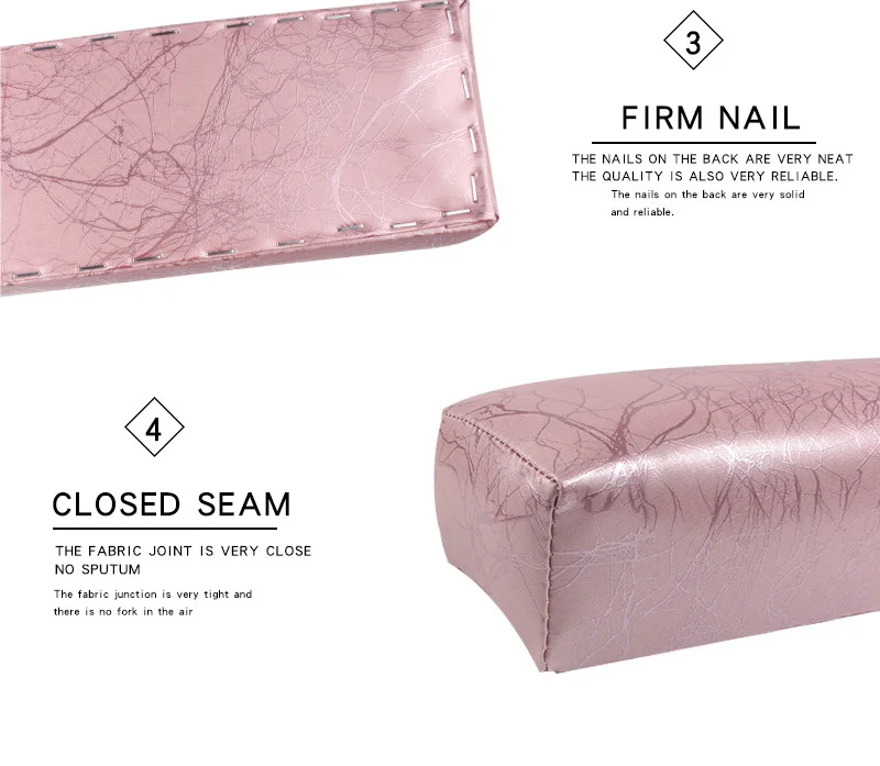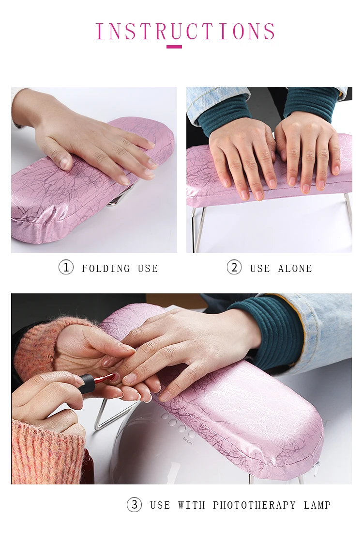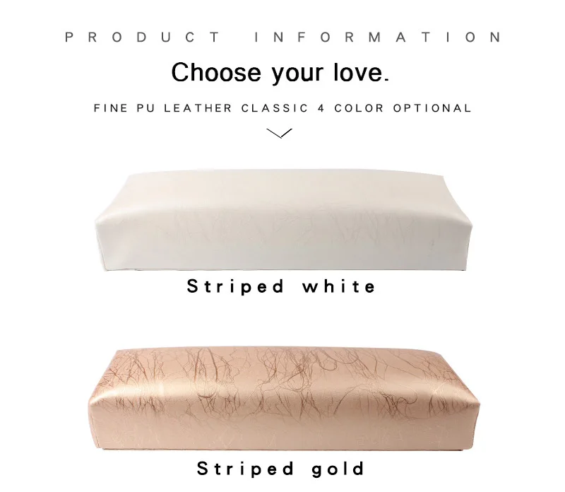 Особенности: Изготовлен из высококачественной кожи, гладкой и стойкой к пятнам. Высокоэластичный наполнитель для защиты окружающей среды обеспечивает комфорт для обработки ногтей и маникюра, удерживая руку, делая долгое время ухода за ногтями. Съемный дизайн, можно стирать наволочку и внутреннюю губку отдельно. Компактная и легкая Подушка, простая в использовании, все, что вам нужно сделать, это положить руки на подушку непосредственно. Модный внешний вид соответствует популярному тренду, который, как кажется, больше клиентов и обеспечивает им хорошее настроение. Профессиональный Нейл-арт продукт, подходит для маникюрного салона, школы нейл-арта, колледжа, оптовой продажи, художника нейл-арта и личного или домашнего использования и т. Д. Тип 1. Подушка для рук Цвет: розовый, желтый Тип 2: подушка для рук Цвет 2: розовый, белый, золотой, серебряный