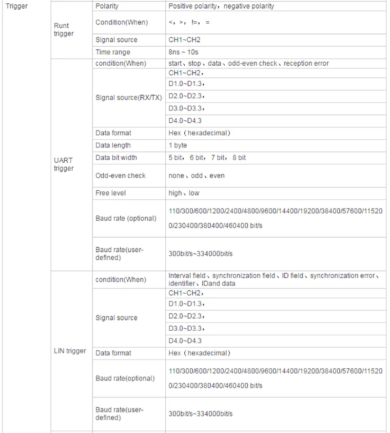 ★Шесть в одном осциллографе: 2 канала осциллографа + 16 каналов логического анализатора + 2 канала генератора сигналов + Цифровой вольтметр + анализатор последовательного протокола + спектральный анализ FFT. ★60 000 wfms/s (dots display)/400000 wfms/s (dots display quick acception mode) Скорость захвата формы волны. ★Сегментированная функция сбора, поддержка захвата до 80000 секций. 256 цветов. ★До 16 видов триггерных функций, включая 5 видов триггеров протоколов. Поставляем 5 вариантов последовательного декодирования. ★1 GSa/s частота образцов в реальном времени аналоговых каналов; 64 Mpts глубина памяти. ★2-канальный источник сигнала, 13 видов сигналов внутри, 4 набора произвольных сигналов, частота дискретизации 200 м, длина волны 8Kpts. ★1 GSa/s частота образцов цифровых каналов в реальном времени. ★200 МГц, 100 МГц и 80 МГц полоса пропускания аналогового канала. ★Низкий уровень базового шума, 500uV/div до 10В/div ультра-Широкий вертикальный динамический диапазон. ★7-дюймовый WVGA емкостный сенсорный экран,(800*480) TFT, с ультра-широким экраном, ярким изображением, низким энергопотреблением и долгим сроком службы. ★Автоматическое измерение 42 видов параметров формы волны (со статистикой). ★5 бит цифровой измеритель напряжения и 6 бит аппаратный Индикатор Частоты функция. ★Функция схемы Bode (осциллографы с функцией источника сигнала могут использоваться). ★Функция математической работы с несколькими волноводами 【math】. Функция поиска событий. ★Стандартные интерфейсы: USB устройство, USB хост, LAN, дополнительные интерфейсы: HDMI ,UART ★Соответствует стандартам класса прибора LXI CORE 2011; Позволяет быстро, Экономичное и эффективное создание и реконфигурация тестовой системы. Поддержка дистанционного управления.