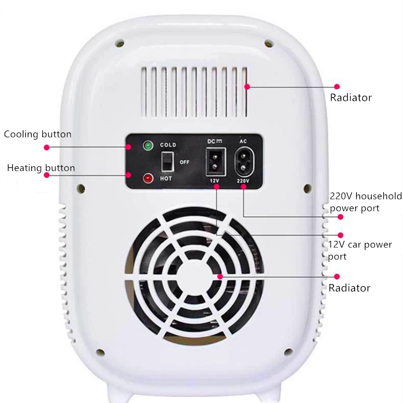 Название продукта: холодильник для ухода за кожей Цвет: белый Емкость: 6 л Размер: 27*20*30 см Типы: мини-холодильник Потребляемая мощность: 60 Вт/ч Направление открытия: справа Материал двери холодильника: пластик Содержит ли он аккумулятор: нет Нужен ли аккумулятор: нет