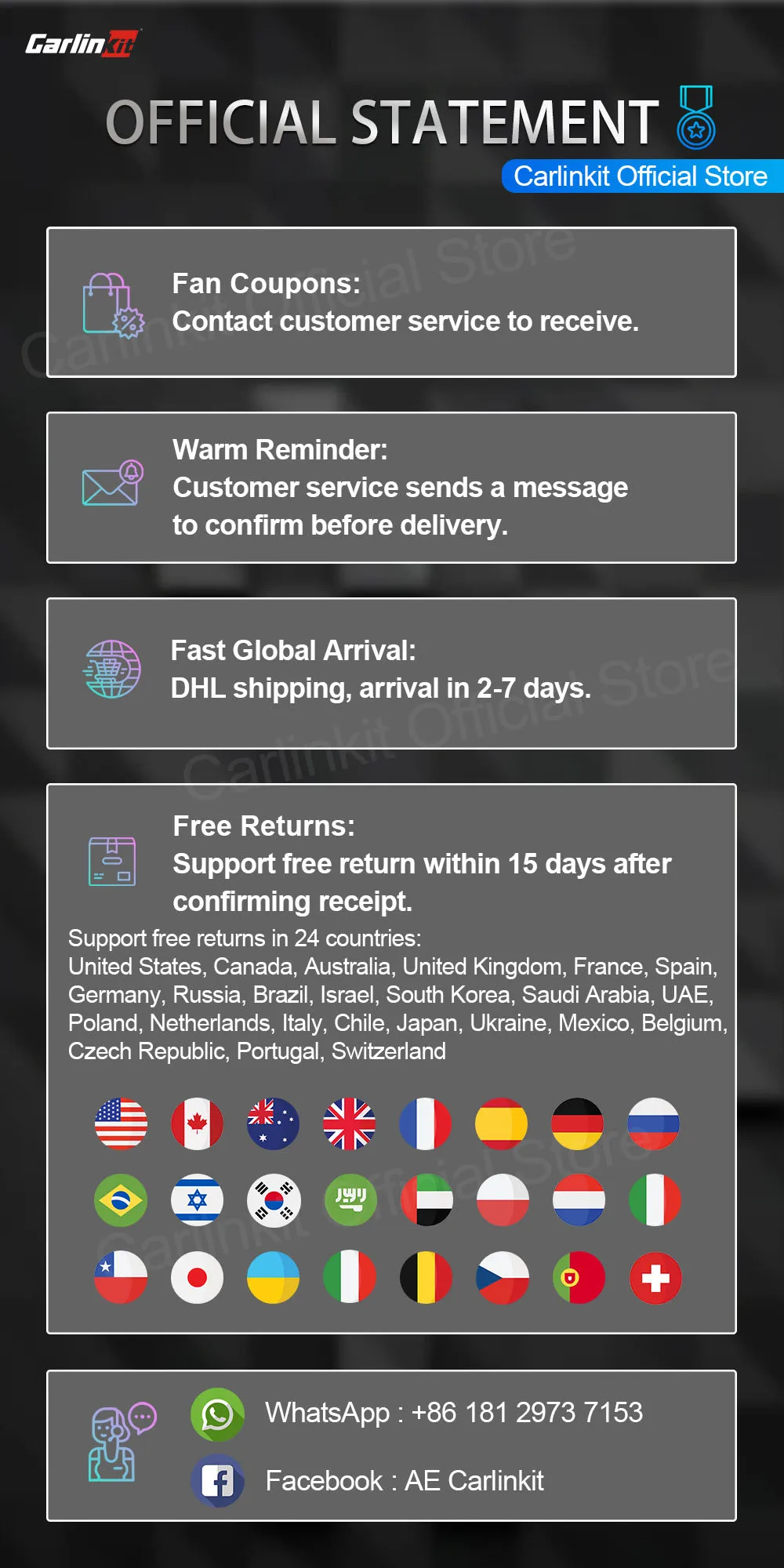 5. Официальные Аутентичные, 365 дней гарантии, профессиональное послепродажное обслуживание клиентов WhatsApp: + 86 181 2973 7153, Facebook: AE Carlinkit.