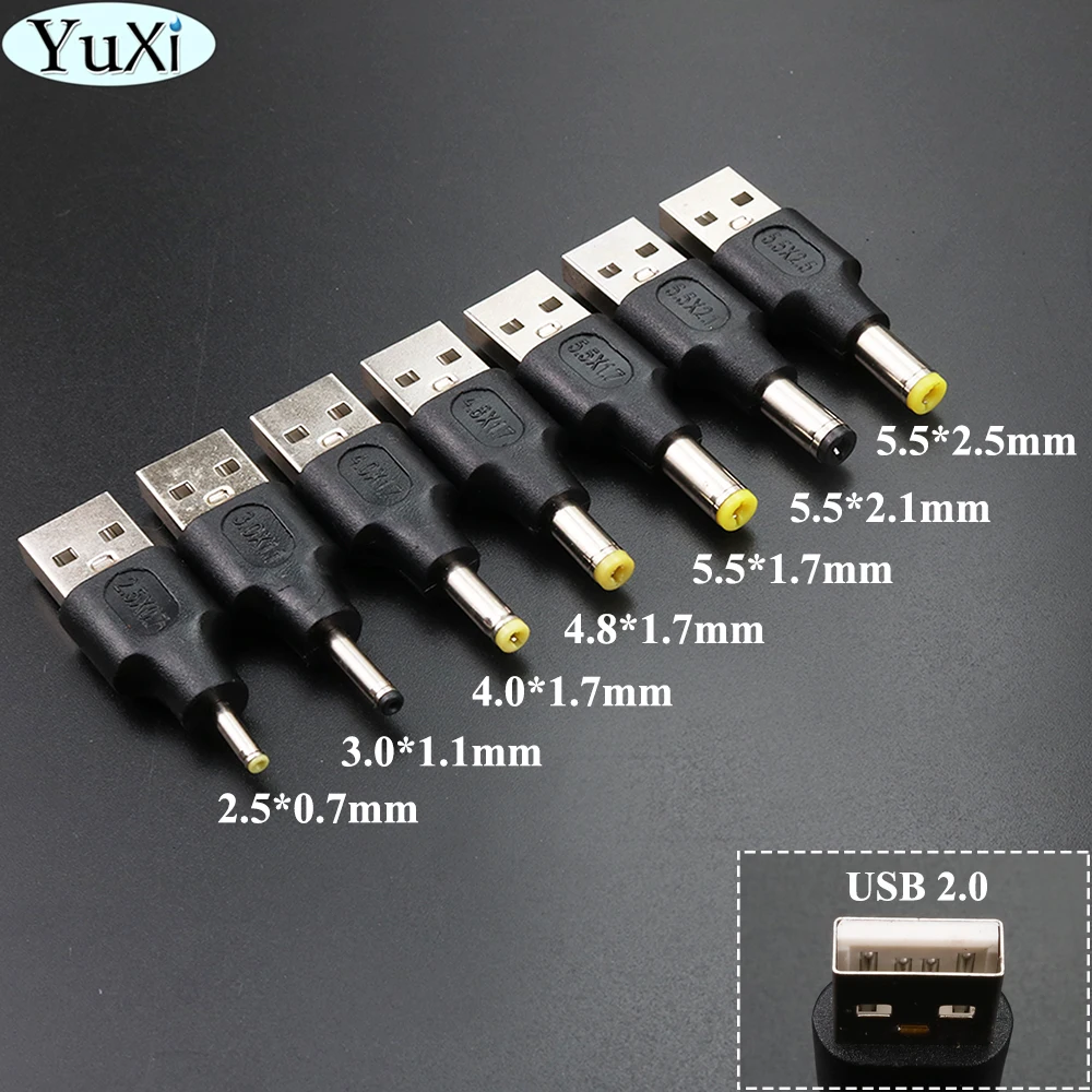 USB 2,0 Тип A штекер 2,5x0,7 3,0x1,1 4,0x1,7 5,5x2,1 5,5x2,5 мм штекер 5 В DC адаптер питания разъем