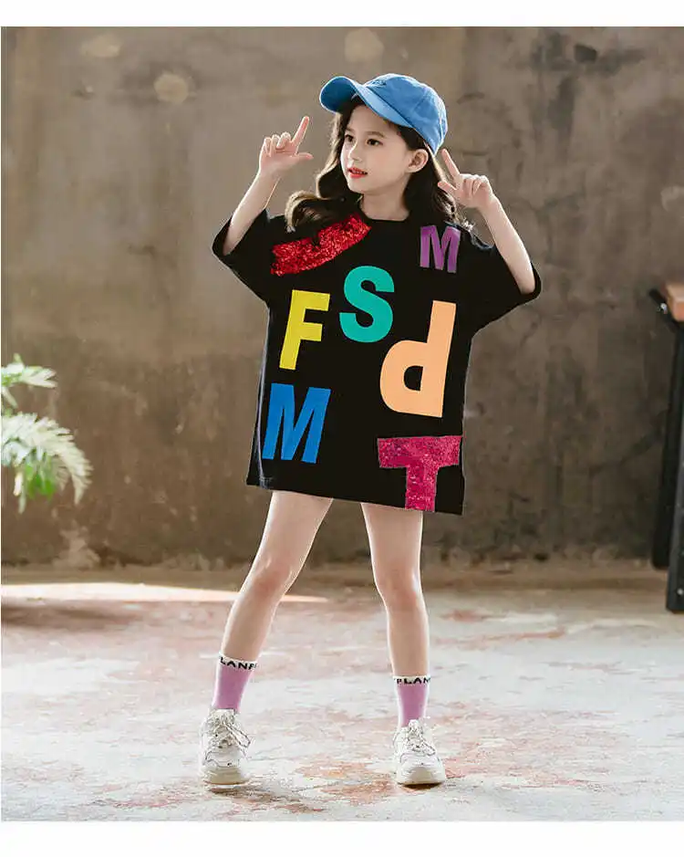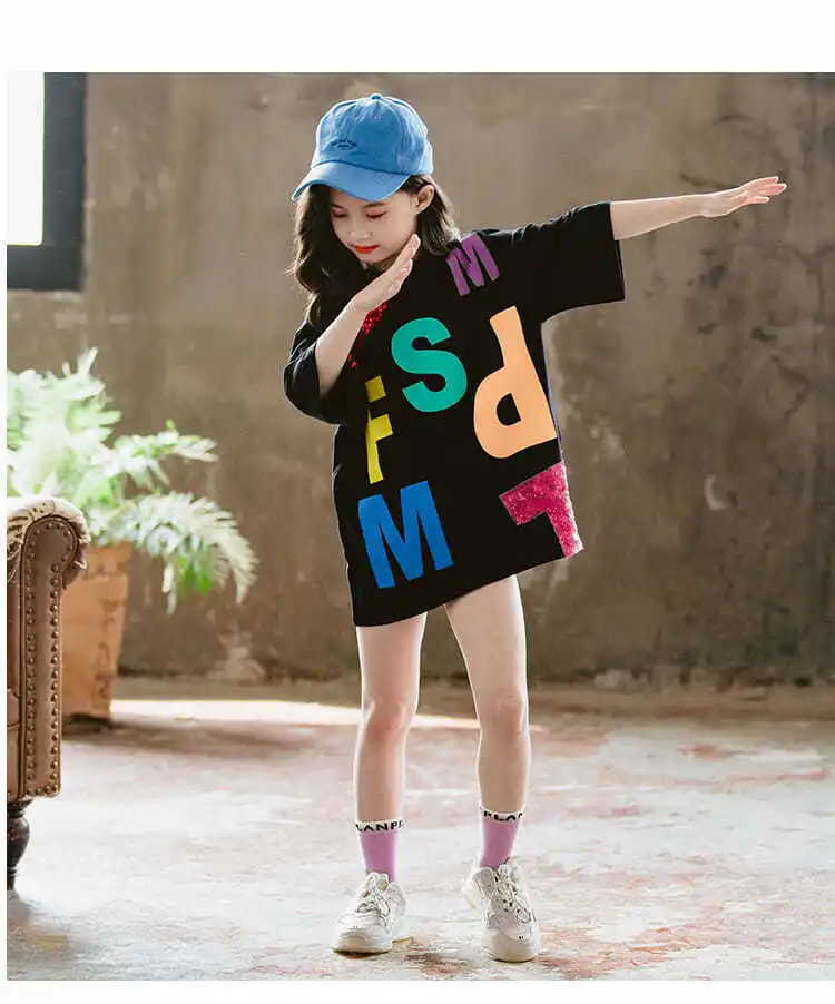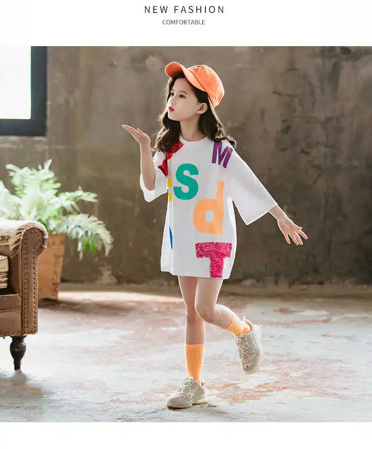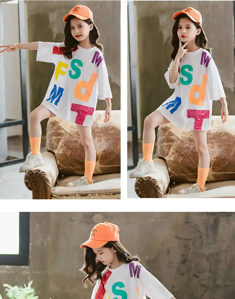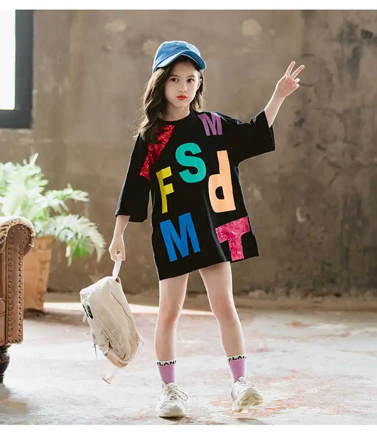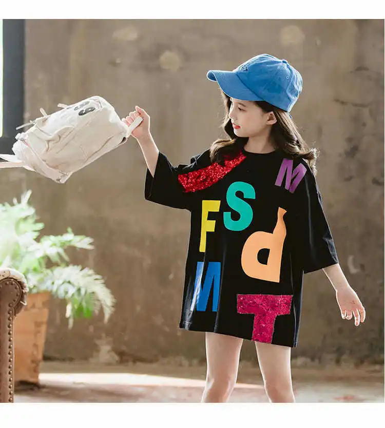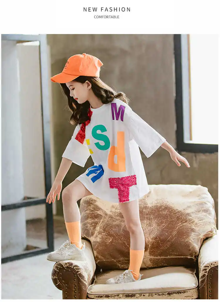 Детские длинные футболки с буквенным принтом, летние топы, одежда с короткими рукавами, Детские футболки, платье для девочек 8, 12, 11, 13 лет, одежда для подростков, 2020