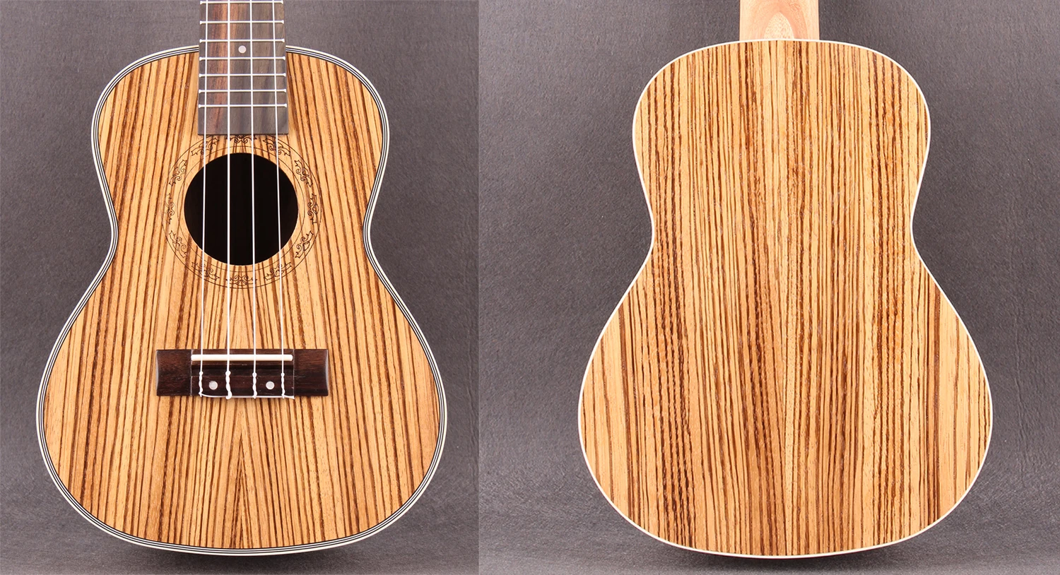 Укулеле Zebra wood, верхняя часть и боковая часть