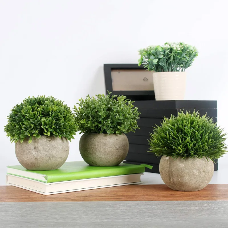 DescriptionИскусственный растительный круглый травяной набор из 3 с серым горшком 9.5х13 см поддельные растения Цветок Трава День Рождения Вечеринка домашний офисный стол Декор