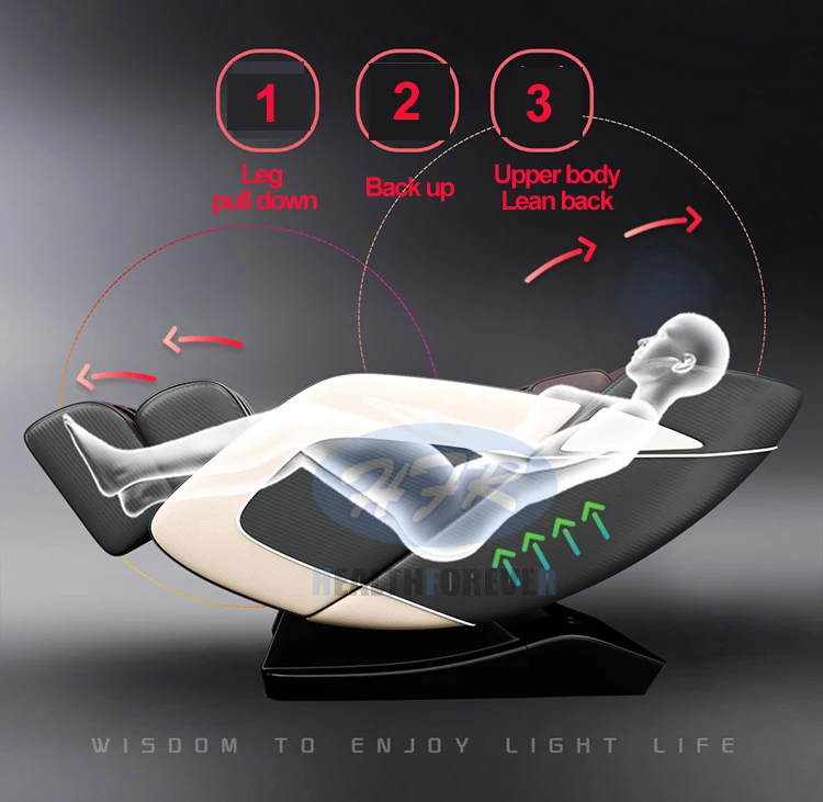1. Высокотехнологичные инновации с нулевой гравитацией; 2. Встроенный пневматический массаж рук; 3. Назад патент 8-колесный манипулятор вверх и вниз ходьба массаж; 4. Двухслойный воздушный мешок для кожи, расширение и сжатие ног; 5. Регулировка спинки 115-170 градусов; 6. ЖК-интеллектуальный пульт дистанционного управления; 7. Функции массажа: стук, ПЭТ, разминание, пресс и шиацу и т. Д.; 8. Массаж ног; 9. Поясничный отдел с функцией нагрева; 10. Подушка сиденья с вибрацией; 11.Bluetooth музыка на мобильный телефон.