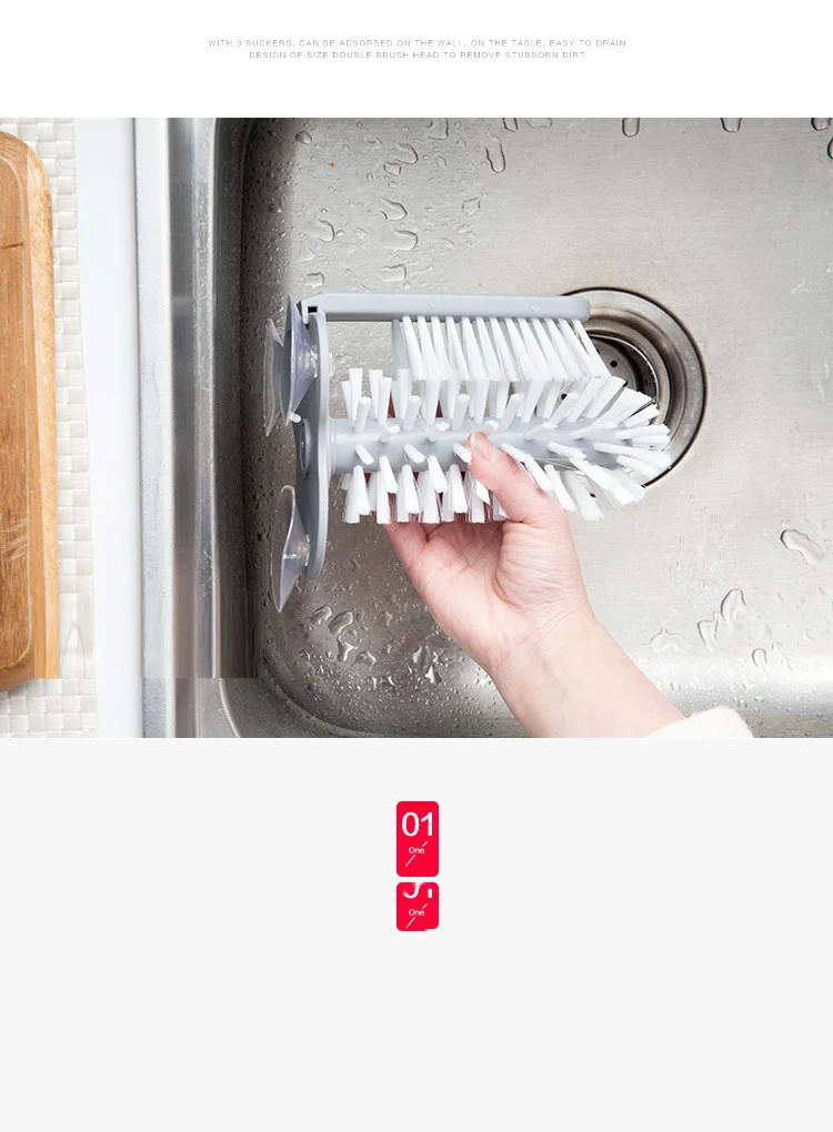 Название продукта: щетка на присоске Размер продукта: около 17,5*14 см Материал изделия: ПП + ПВХ Цвет продукта: серый Упаковка продукта: OPP мешок