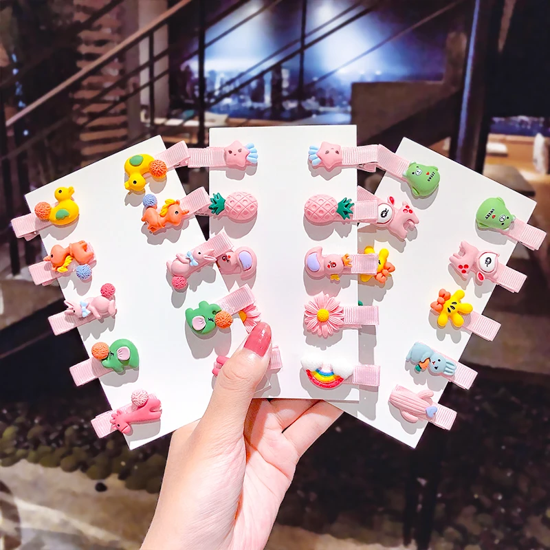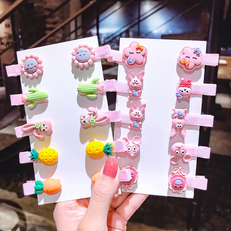 10 шт./компл. заколки для волос для девочек с мультяшным единорогом, фруктами и цветами, детские заколки для волос, модные аксессуары для волос Шпильки для волос покрываются тканью, что позволяет избежать повреждения волос Упаковка: 10 шт./компл.