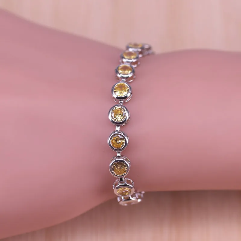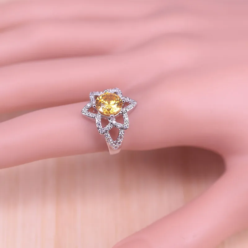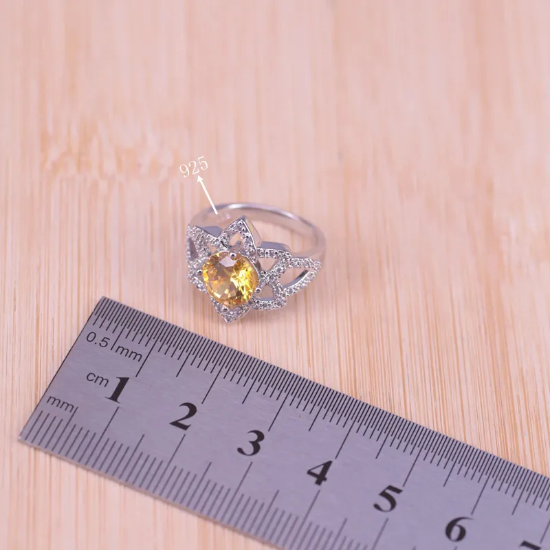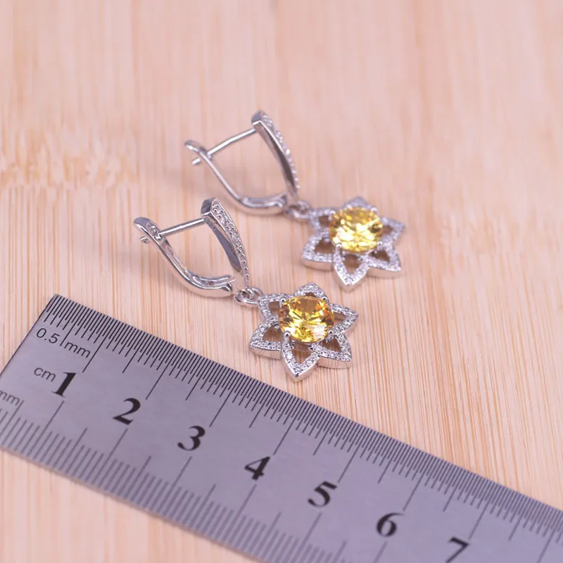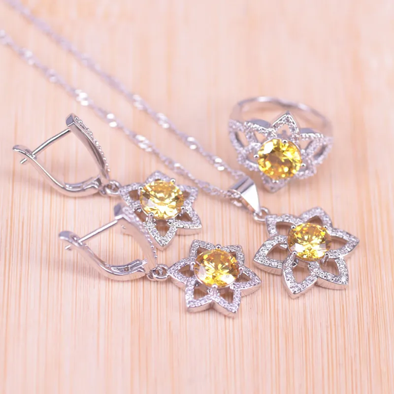 Risenj Sparking Yellow 925 Stamp Silver Color Hexagon Shiny Star Top Zircon Jewelry Earrings Ring Necklace Set Bridal Jewelry