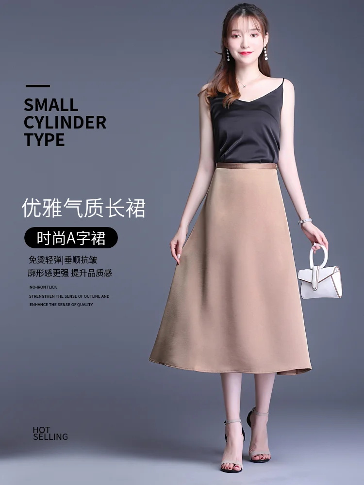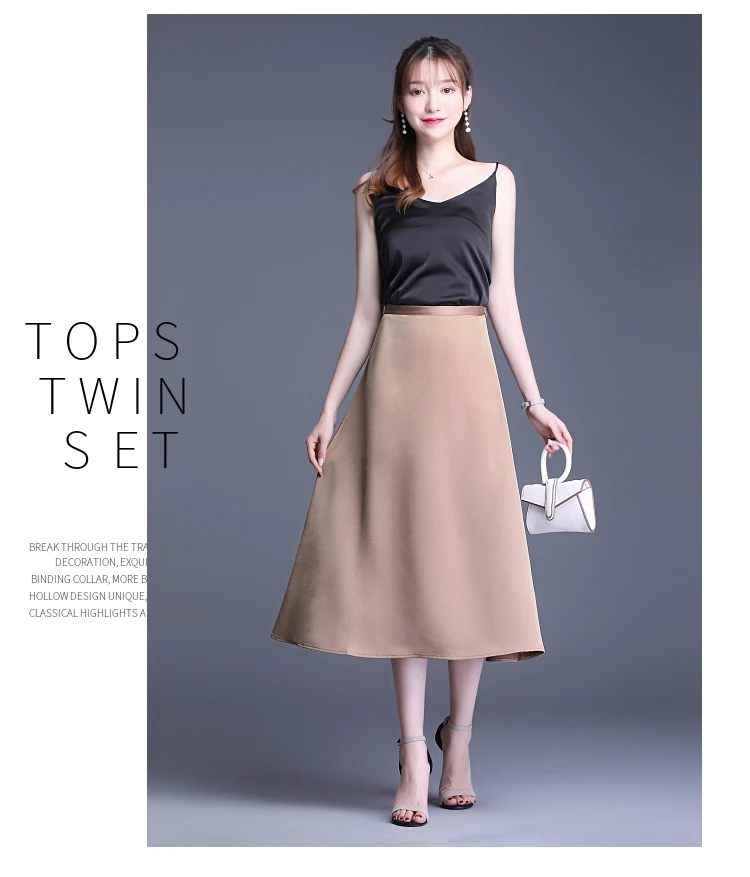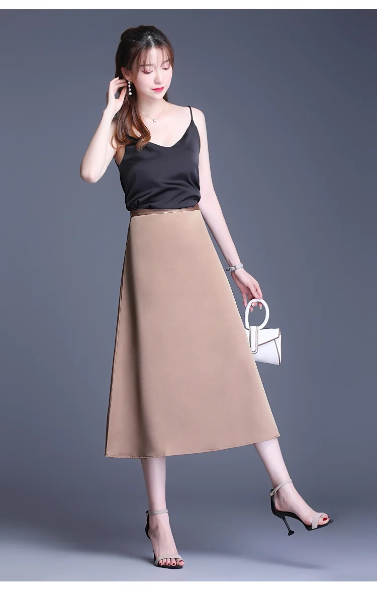 Женская атласная юбка TingYiLi, элегантная офисная длинная юбка с высокой талией в Корейском стиле, цвета: черный, бежевый, хаки, синий, на лето