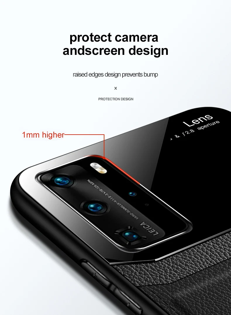 HereCase противоударный чехол для Huawei P40 P40 Pro P30 Pro P20 Lite кожаный зеркальный стеклянный чехол для телефона Honor 20 20 Pro View 30 Pro