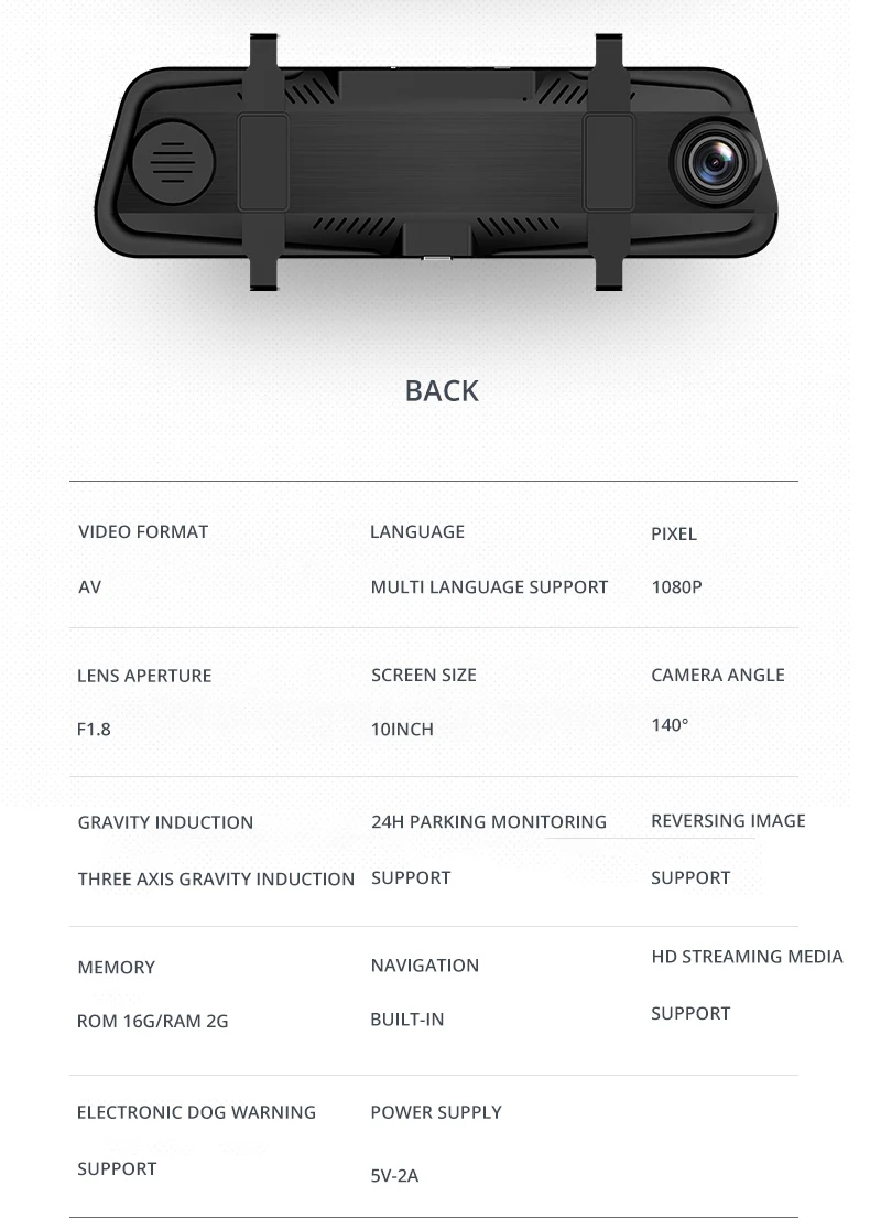 Особенности: Ночное видение, ночное видение, заполняющий светильник, циклический видео, низкий светильник, ночное видение, улучшенное обнаружение движения, GPS позиционирование, gps-навигация, Wi-Fi, Интернет, Парковочное изображение, мониторинг парковки, предупреждение о столкновении переднего автомобиля, напоминание о начале движения переднего транспортного средства, обнаружение расстояния, изменение полосы движения Измерение скорости, Мобильная скорость, усталость, вождение, напоминание, короткое видео, обмен, распознавание столкновений, Bluetooth, пешеходная предупреждающая дорожка, смещение, предупреждение, ограничение скорости, знак, напоминающий водной знак номерного знака до и после записи, до и после двойного объектива, интеллектуальное Голосовое управление weChat пикап, FM Запуск Оперативная память: 2 Гб Классификация цвета: черный, темно-черный Размер экрана: 10 дюймов Тип Смарт: другие смарт Тип установки: Универсальный Диафрагма основного объектива: F2.0 Количество линз: двойные линзы Однообъективная камера пикселей: 12 миллионов Пиксели камеры: 5 миллионов Угол обзора: 170 ° Разрешение изображения: 1296P