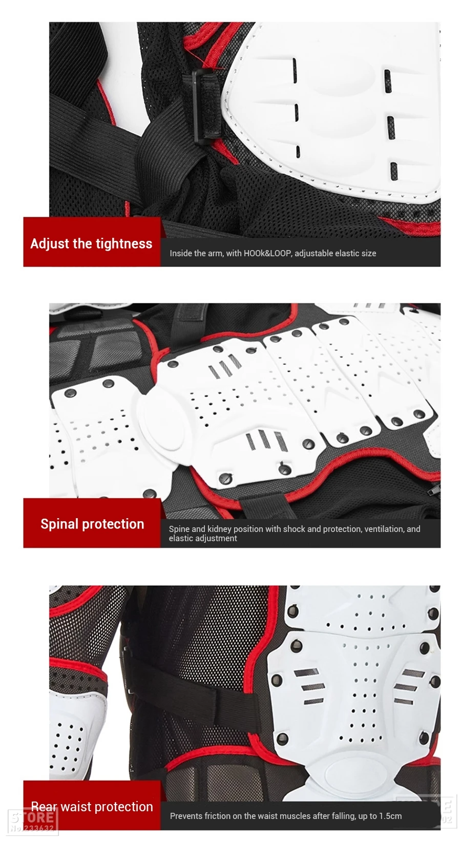 Если вы обычно едете на мотоцикле в течение длительного времени, вы должны выбрать этот вид защитной брони защитное снаряжение, чтобы эффективно защитить себя, когда вы в езде. Защитная Броня изготовлена из износостойкого нейлона высокой плотности. Подвижная подкладка позволяет легко чистить, несколько больших вентиляционных отверстий пластиковых оболочек и пены обеспечивают максимальную вентиляцию, все преимущества обеспечивают безопасность во время езды. На самом деле, это необходимо для мотоциклиста.