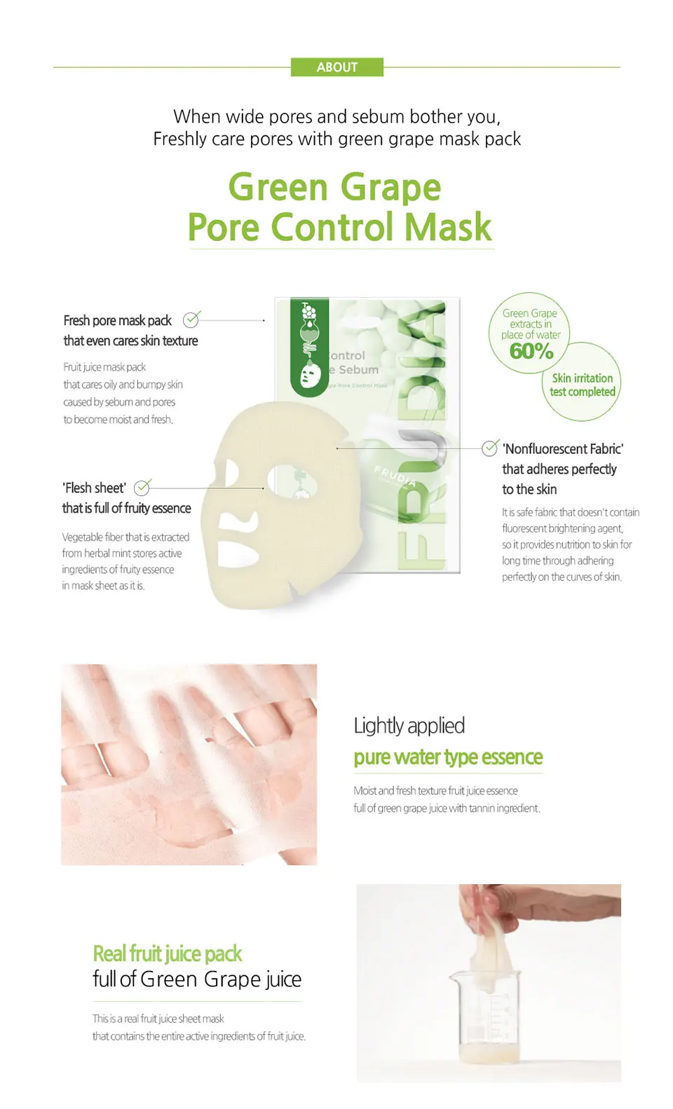 Маска для лица-зеленая маска для контроля пор винограда (1 шт.) Увлажняющая эмульсия эссенция уход за кожей лица Уход Корея Косметика