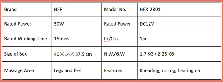1. Два ряда большого ролика для ног, закрывающие стопу, чтобы насладиться круговым массажем; 2.6d имитирующая Массажная голова человека, несколько имитирующих методов массажа человека, электрический массаж тайцзи; 3. Теплое ощущение и горячий дизайн сжатия, согревающие ноги и тело; 4. Открытый дизайн дышащей, удобной и не душной ноги; 5. Положительная и отрицательная функция разминания для удовлетворения различных потребностей различных групп; 6. Продукт оснащен автомобильной зажигалкой и домашним адаптером для реализации функции двойного использования автомобиля и дома, и операция проста и удобна; 7. Он имеет удобную и дышащую сетку, оболочку для обработки фортепианной краски с щедрым внешним видом и противоскользящую подкладку для ног.