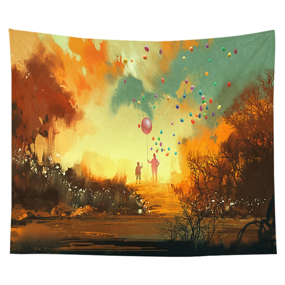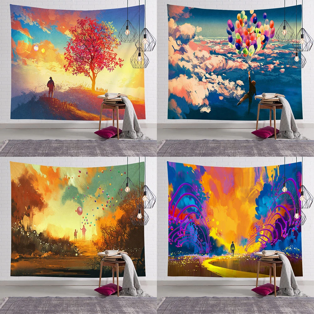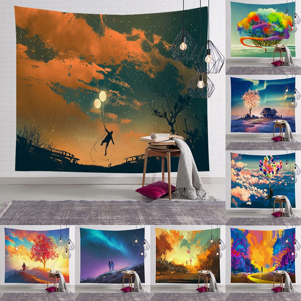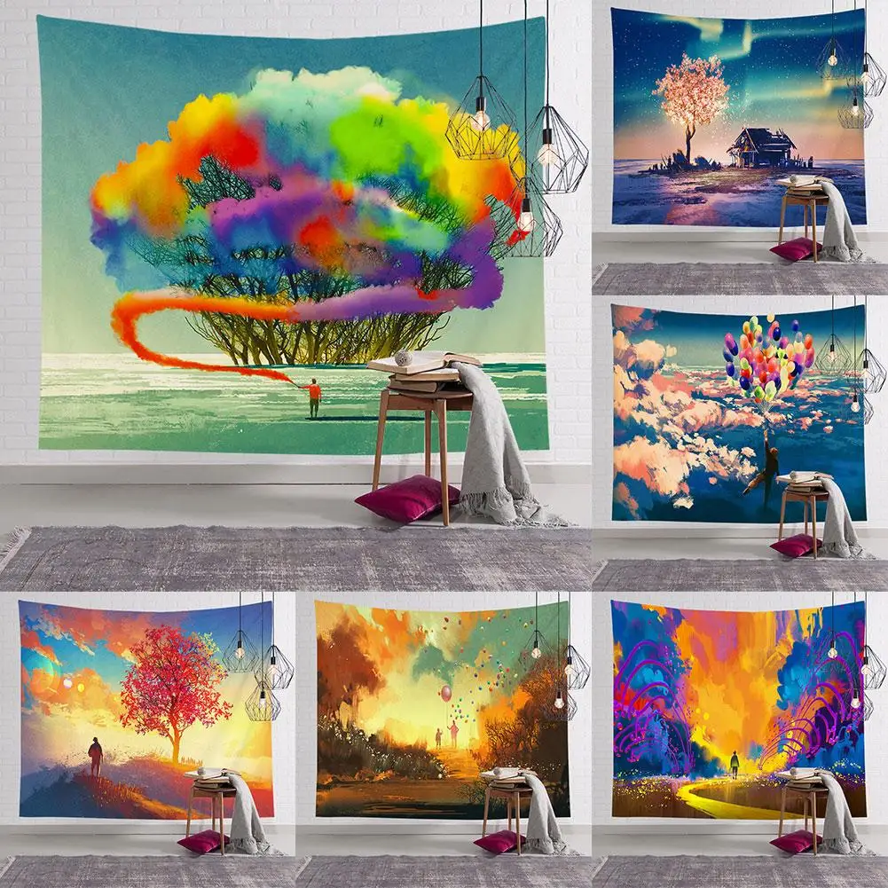 Яркий цвет пейзаж воздушный шар в форме дерева настенный гобелен одеяло Декорация