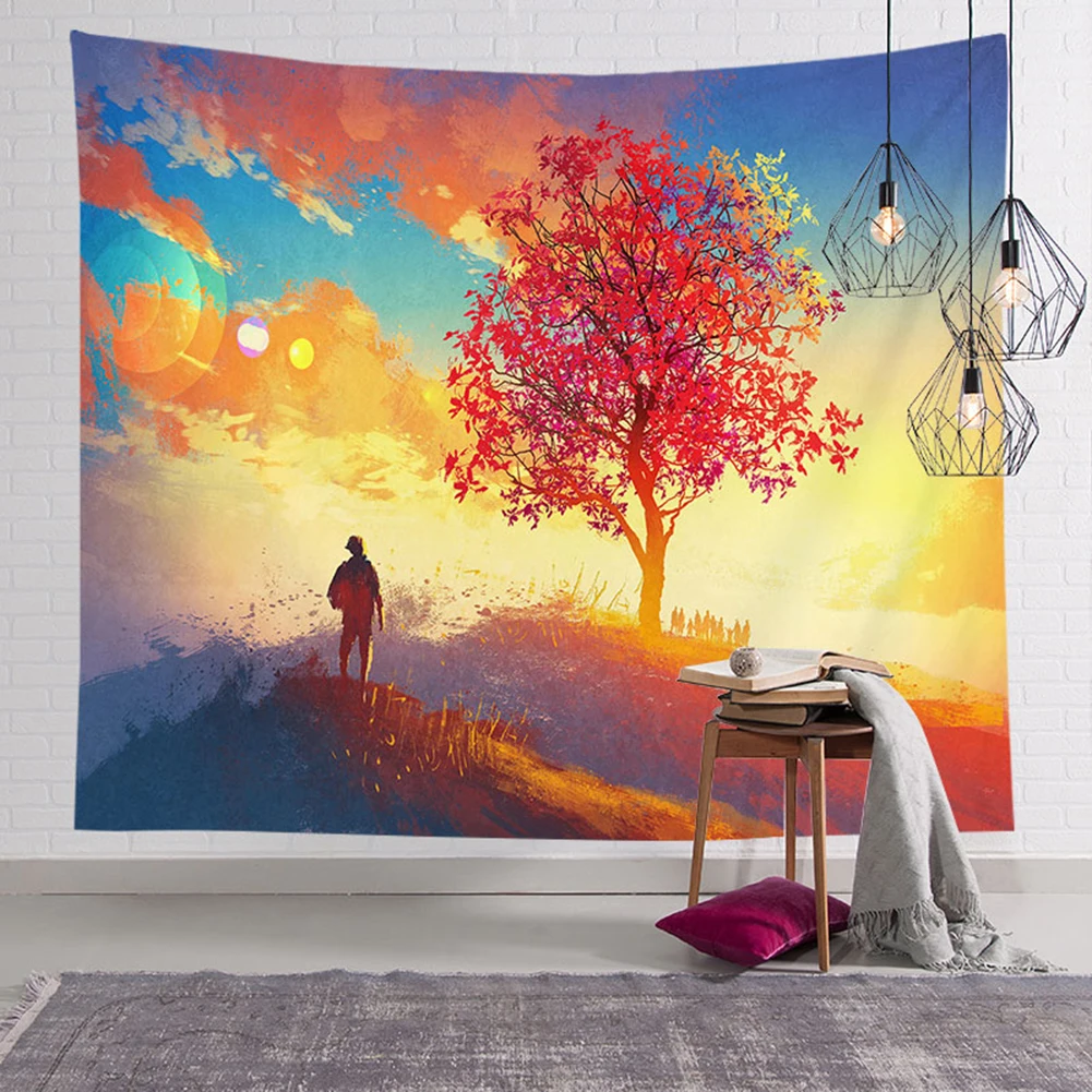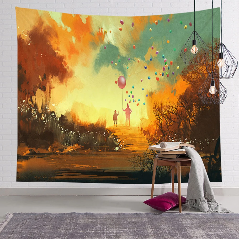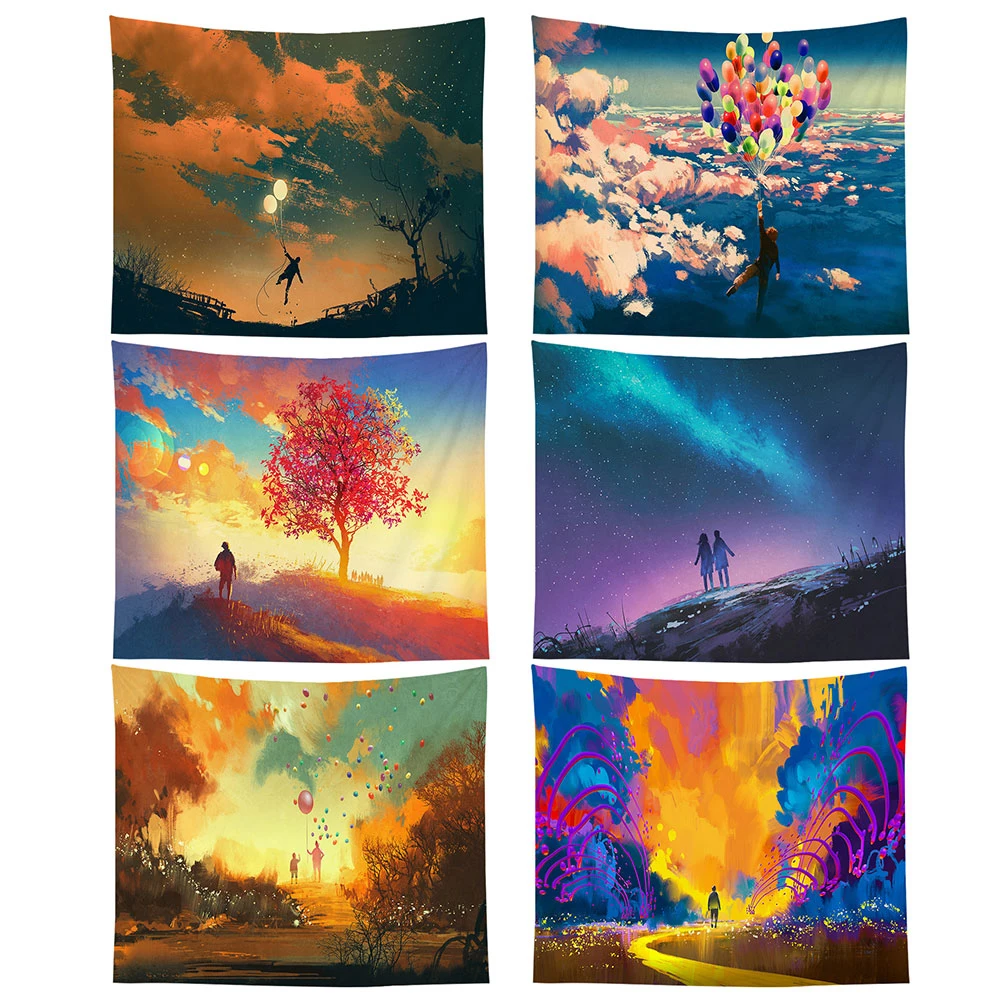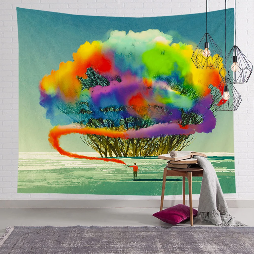 Яркий цвет пейзаж воздушный шар в форме дерева настенный гобелен одеяло Декорация