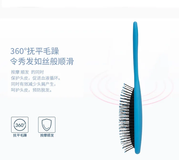 Название продукта: Массажная расческа Подходит для волос: влажных и сухих Функция: массаж, гладкие волосы, без узлов Размер: 22*8*3 см Вес: 96 г
