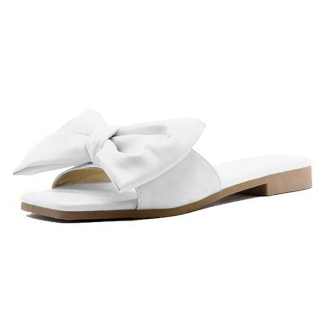 Женские сандалии; Тапочки на плоской подошве с бантом; Повседневная пляжная обувь для дома и улицы