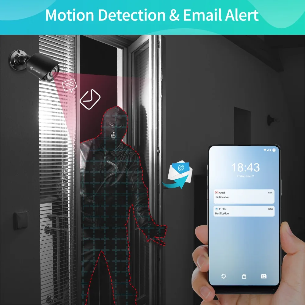 Когда камера обнаруживает человеческое лицо или формы, даже это скульптура, она вызовет оповещения по электронной почте. Чтобы минимизировать Ложные сигналы тревоги, больше нет ненужных оповещений, вызванных движением насекомых и другими маленькими движениями.