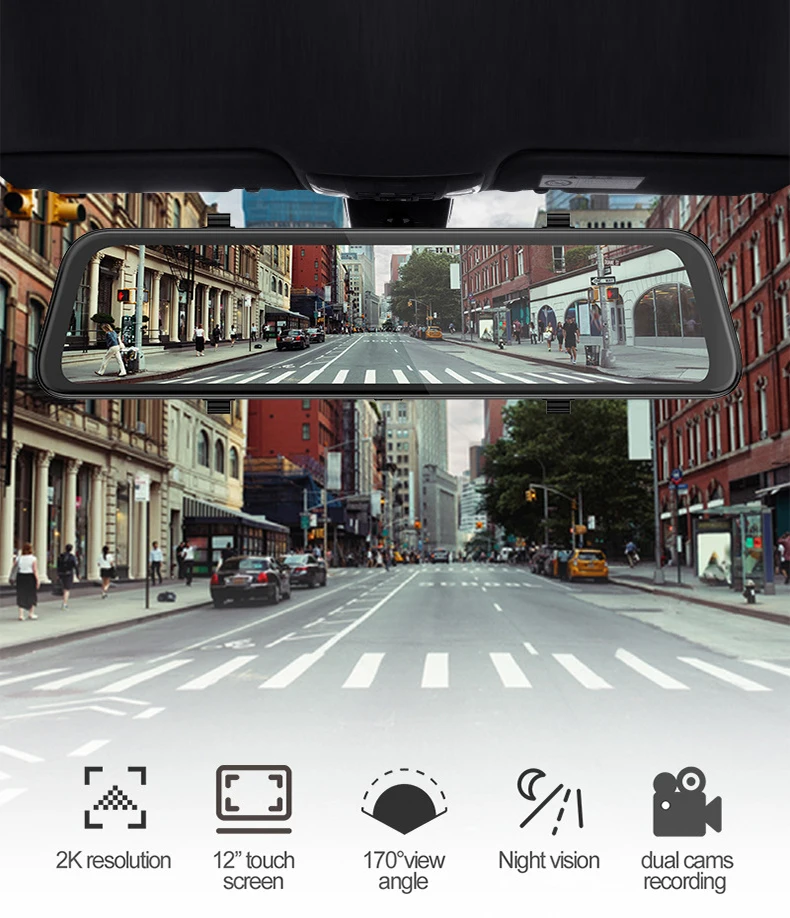 Измене видеорегистратор Даш Cam Автомобильная смарт-зеркало заднего вида с 12-дюймовый полный экран передняя и задняя двойная запись 2K зеркало заднего вида Автомобильный видеорегистратор