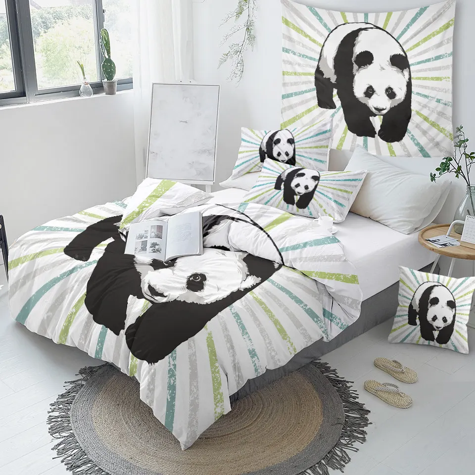 Item Name:Bedding SetPacking List:1* Duvet Cover + 2* Pillow CasesFabric:PolyesterSeason:Spring, Summer, Autumn, WinterFeatures:For anyone that just loves panda, this cute duvet cover will look beautiful in any type of bedroom.BeddingOutlet Reminder:1) If you need extra sheet to match, please contact us.