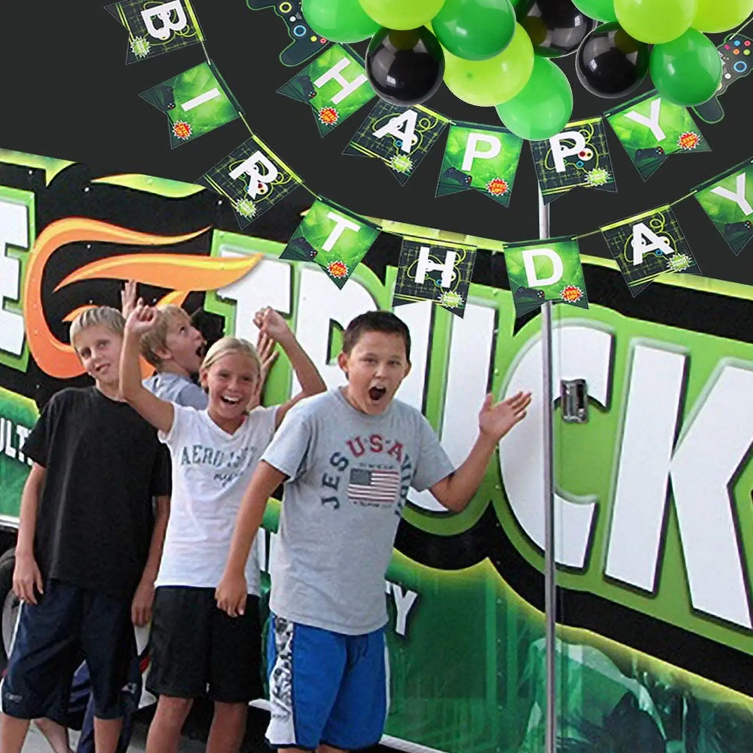 Включает в себя: 1 баннер на день рождения, 1 знак приветствия, 2 шарика для игрового контроллера, 30 латексных шаров 12 дюймов, богатое сочетание для вашего украшения