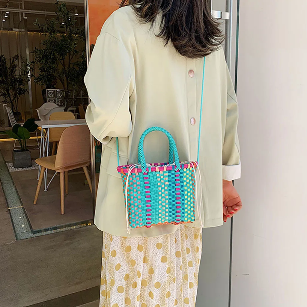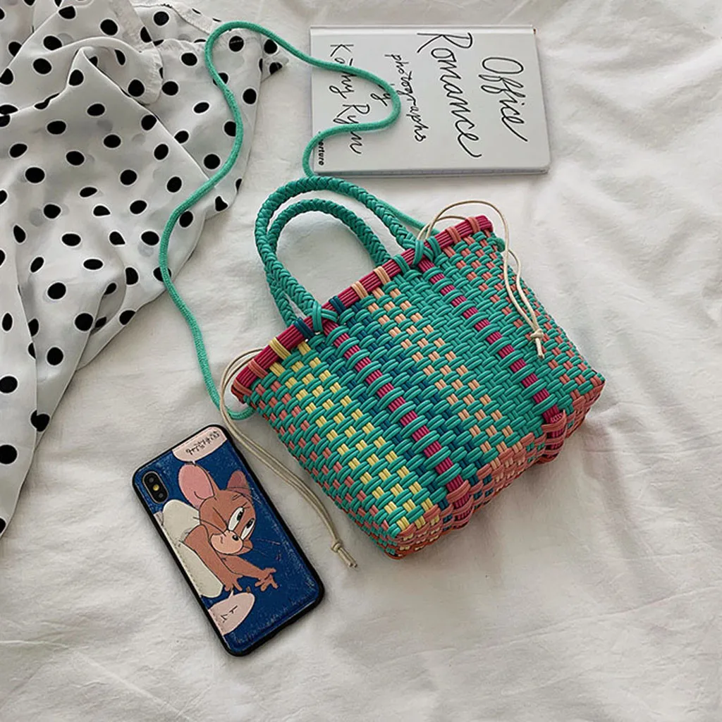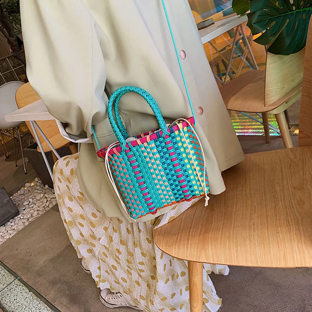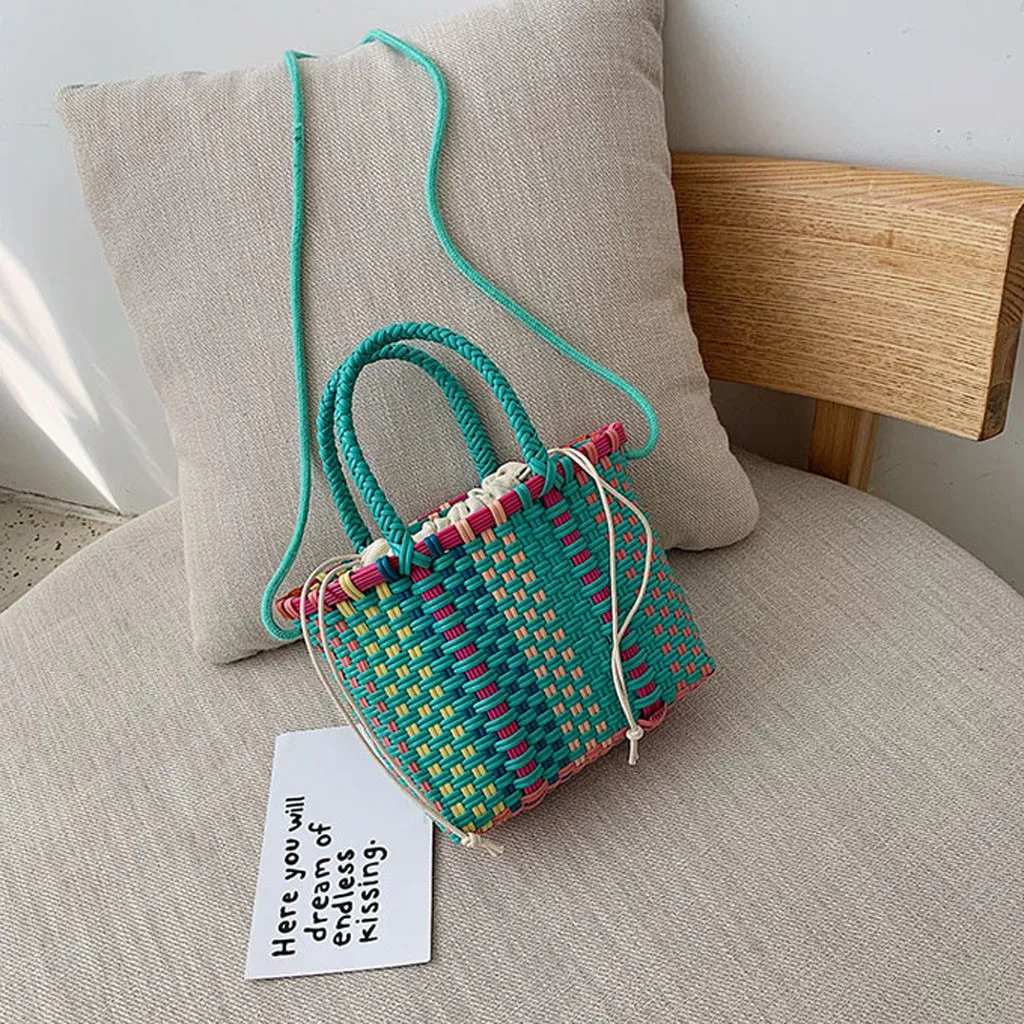 Женская плетеная пляжная сумка, корзина для покупок, полосатая ручная трикотажная Сумка-тоут