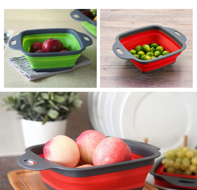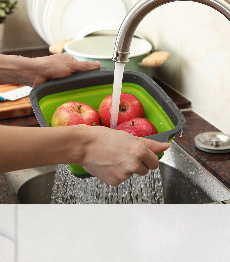 Складная Силиконовая корзина для слива квадратная телескопическая складная корзинка для фруктов складные корзины для мытье овощей ситечко