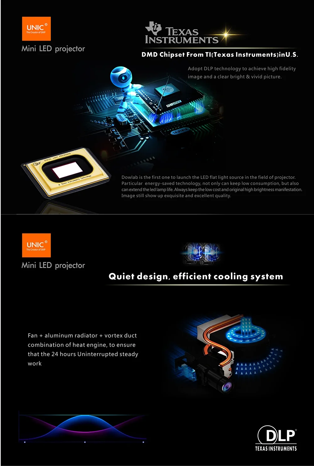 -Технология DLP обеспечивает высокую точность изображения и четкое яркое и яркое изображение