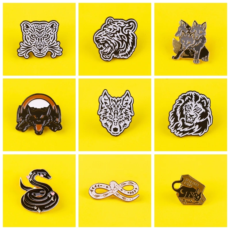 Панк животное брошь волк значки на Рюкзак Набор Значки для одежды эмалированные булавки для рюкзаков одежда отворот значок аксессуары
