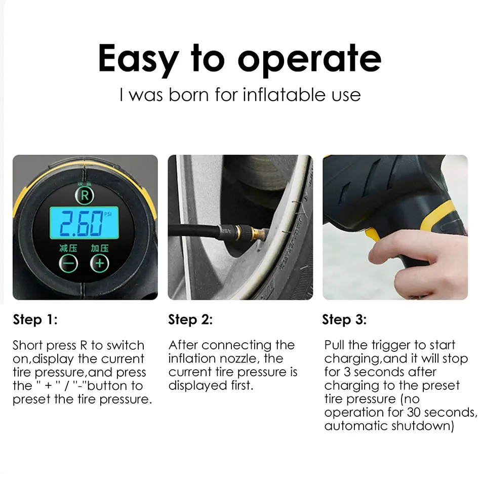• 【Quick inflation】беспроводной воздушный компрессор имеет 35 л/мин воздушный поток, может заполнить шину с низкой шиной в течение 1 минут; Встроенный в новейшие технологии литиевая батарея, может заполнить 5 шт. без газовых шин. Отлично подходит для вождения, путешествий или использования дома, офиса, автомобиля и т. д. • 【Reliable】точный и умный, безопасный, светодиодный фонарик, автомобильное зарядное устройство постоянного тока, компрессор автоматически остановится, как только достигнет желаемого давления. Система защиты от перегрева воздушного компрессора с питанием от батареи отключит устройство при перегрузке или температуре достигает 100 ℃, что намного ниже, чем термостойкий объем его корпуса ABS. Что еще? Фонарик хорошо виден в темноте и автомобильное зарядное устройство постоянного тока для чрезвычайных ситуаций. • 【Различные насадки для многократного использования 】 Накачка шин подходит для накачивания шин на автомобилях, велосипедах, седане и внедорожниках среднего размера. Поставляется с дополнительными Сопло-адаптерами, так что вы также можете использовать его для надувания спортивных шаров или других надувных изделий. • 【Многофункциональность 】характеристики продукта включают: цифровой дисплей давления в шинах, предустановка давления в шинах, освещение, автоматическую зарядку, остановку и светодиодный светильник. Мощный двигатель очень безопасен, и его срок службы в два раза превышает срок службы обычных двигателей. Автомобильный насос с ЖК-Цифровым Манометром позволяет легко измерять давление в шинах. Подключите шланг к воздушному соплу, прикрутите его к клапану и нажмите на спусковой механизм. • 【Легко переносить 】 беспроводной воздушный компрессор с сумкой для хранения, может использоваться в любом месте без внешнего источника питания. Отлично подходит для вождения, путешествий или использования дома, офиса, автомобиля и т. д. 【Reliable】точный и умный, безопасный, светодиодный фонарик, автомобильное зарядное устройство постоянного тока, компрессор автоматически остановится, как только он достигнет желаемого давления. Система защиты от перегрева воздушного компрессора с питанием от батареи отключит устройство при перегрузке или температуре достигает 100 ℃, что намного ниже, чем термостойкий объем его корпуса ABS. Что еще? Фонарик хорошо виден в темноте и автомобильное зарядное устройство постоянного тока для чрезвычайных ситуаций. 【Различные насадки для многократного использования 】надувное устройство для шин подходит для надувания шин на автомобилях, велосипедах, седане и внедорожниках среднего размера. Поставляется с дополнительными Сопло-адаптерами, так что вы также можете использовать его для надувания спортивных шаров или других надувных изделий. 【Многофункциональность 】характеристики продукта включают: цифровой дисплей давления в шинах, предустановка давления в шинах, освещение, автоматическую зарядку, остановку и светодиодный светильник. Мощный двигатель очень безопасен, и его срок службы в два раза превышает срок службы обычных двигателей. Автомобильный насос с ЖК-Цифровым Манометром позволяет легко измерять давление в шинах. Подключите шланг к воздушному соплу, прикрутите его к клапану и нажмите на спусковой механизм. 【Легко переносить 】 беспроводной воздушный компрессор 
