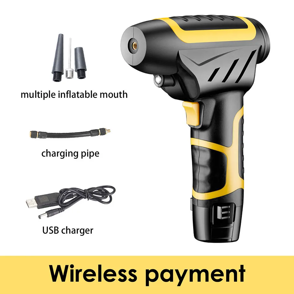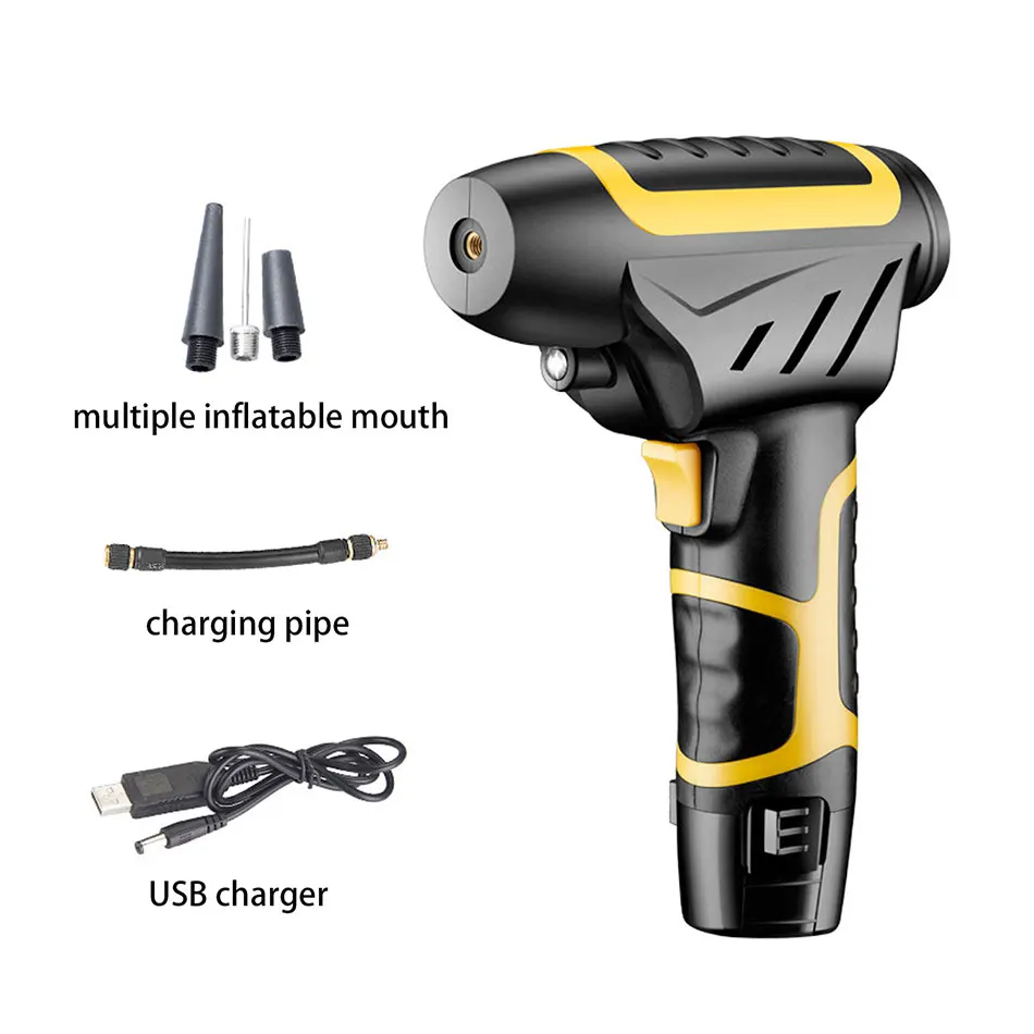 • Надувное устройство-1 шт. • Аккумулятор-1 шт. • 1 usb-кабель для зарядки • 1 надувная трубка • Многофункциональное газовое сопло-1 шт.